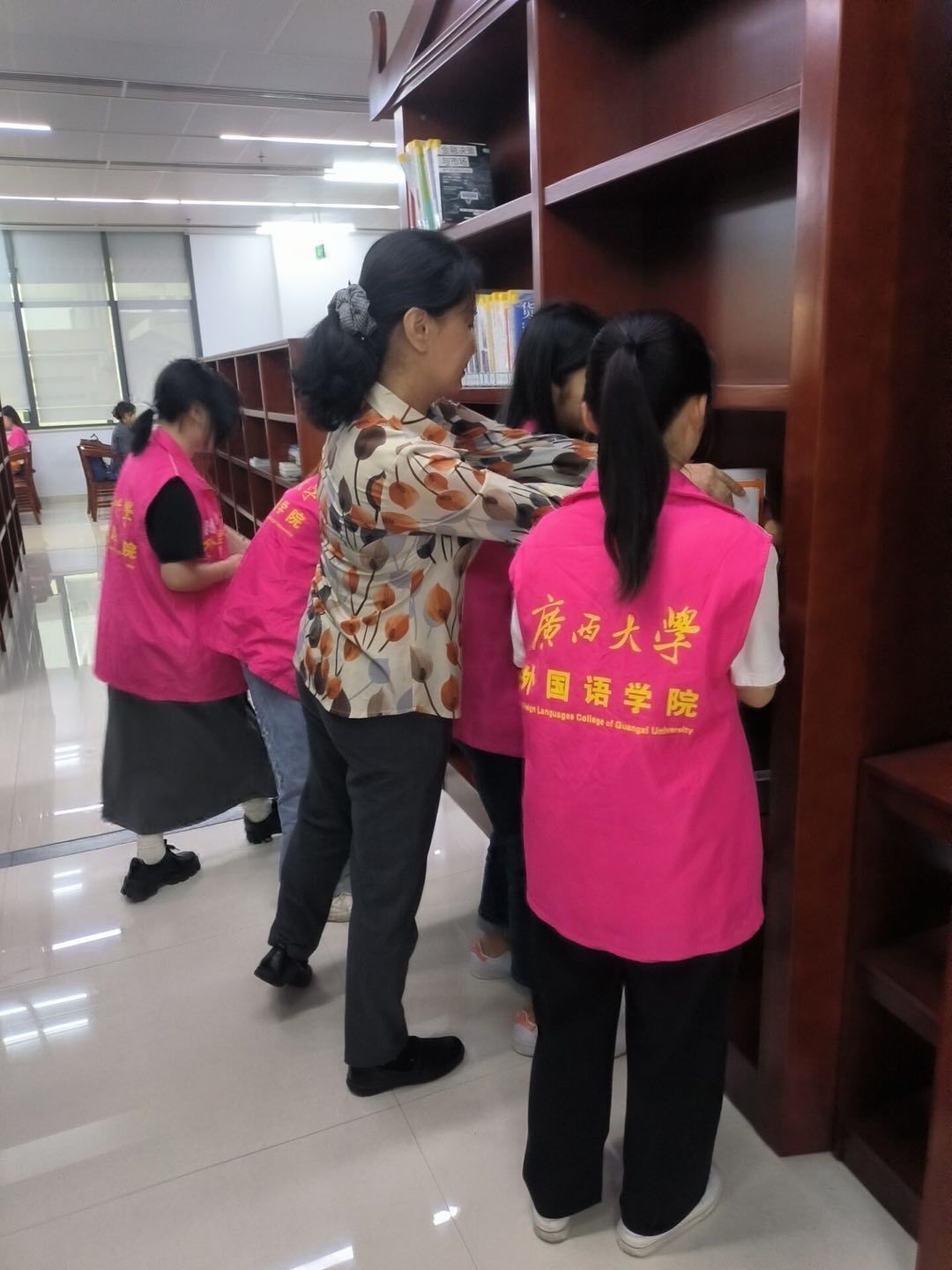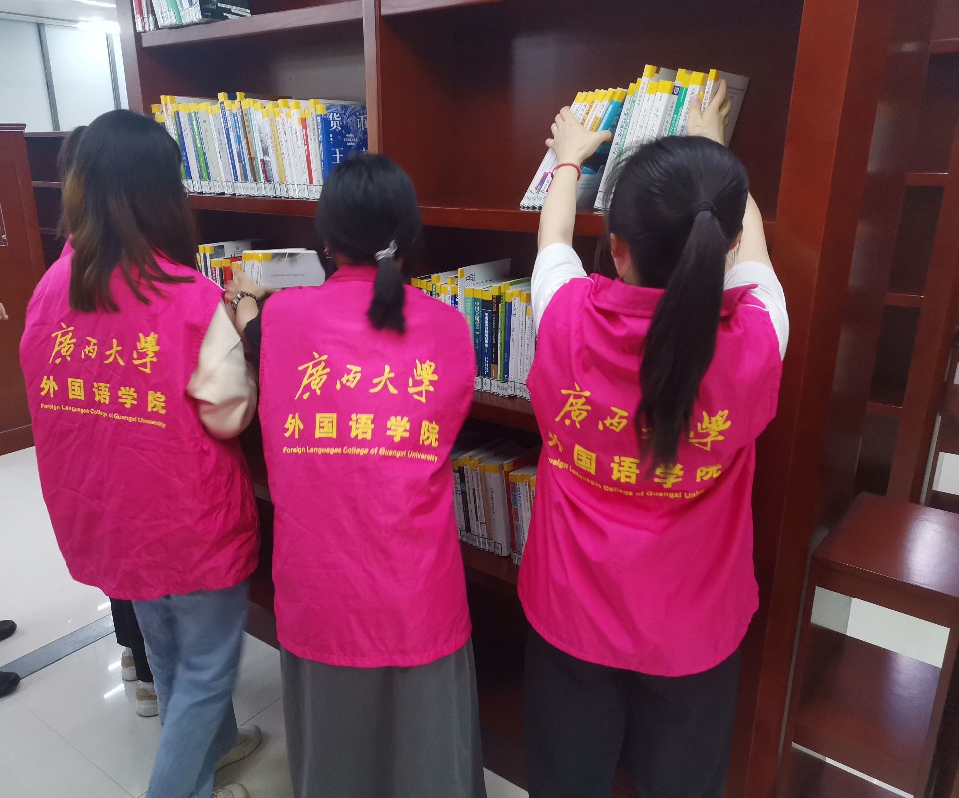 日语专业本科生党支部协助公司图书馆进行书籍的整理与摆放