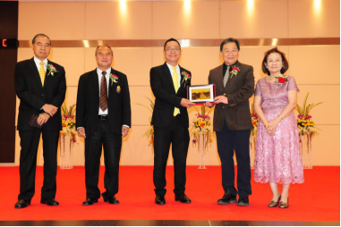 图二:罗选民教授向泰国教育部副部长赠送太阳成集团tyc122cc铂金画。