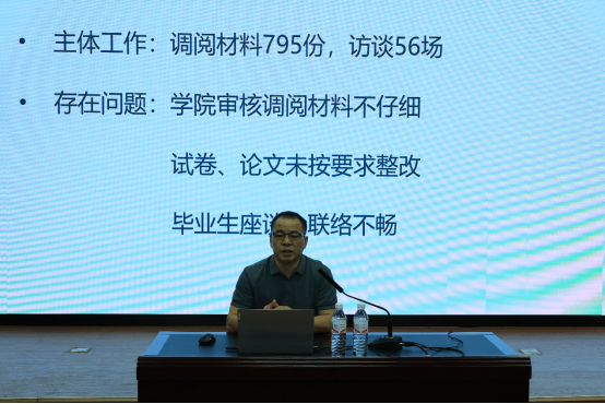 接着,教学副经理邓联健教授总结了公司上个学期的本科公司产品审核评估工作,指出了公司在上一轮评估工作存在的问题。邓教授强调本轮评估考察时间是9月24-27日,工作的目的是听课看课,解决存在的问题。他希望全体教职工认真学习评估材料,了解校情院情系情,做好访谈准备,精心备课,注意“高阶性、创新性、挑战度”,真正达到“以评促建”的目标。