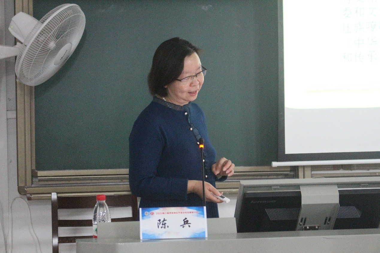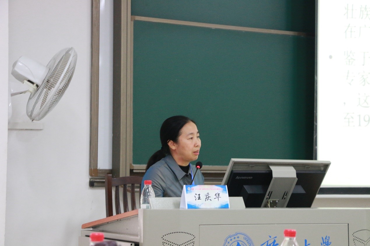 文学文化组共有四位参会代表发言,由宁一中教授、杨金才教授、彭青龙教授主持点评。陈兵通过对非物质文化遗产壮族嘹歌的系统整理,讨论少数民族文化的传承和创新性保护。金海燕基于日本的现状,分析我国中小学职业生涯教育的实施路径。蔡成真围绕《建筑的七盏明灯》诗性张力,对其进行解读,探讨美与力量的颉颃。蒋岩根据诗歌影音录制的档案,讨论其在诗歌教学中的运用。在会后的点评环节中,宁一中教授和杨金才教授分别对各位代表的发言进行了细致的点评,为他们今后的学术研究作出了方向性指导。其中,宁一中教授呼吁研究语言文化的学者要讲好中国故事,提升自己的翻译水平,用受众喜闻乐见的形式,用正确和准确的语言传播中国文化。