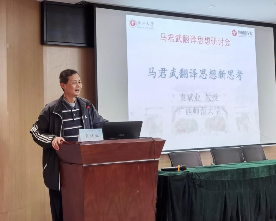 来自广西师范大学的袁斌业教授是国内第一位系统研究马君武翻译思想的学者,也是该研究领域的标杆人物之一。此次袁教授以“马君武翻译思想的新思考”为题,与参会代表分享了他对马君武翻译思想的新认识、马君武翻译思想的来源、马君武翻译思想与启蒙运动的推进和其他社会实践的开展,以及关于马君武翻译思想家标签的新思考。