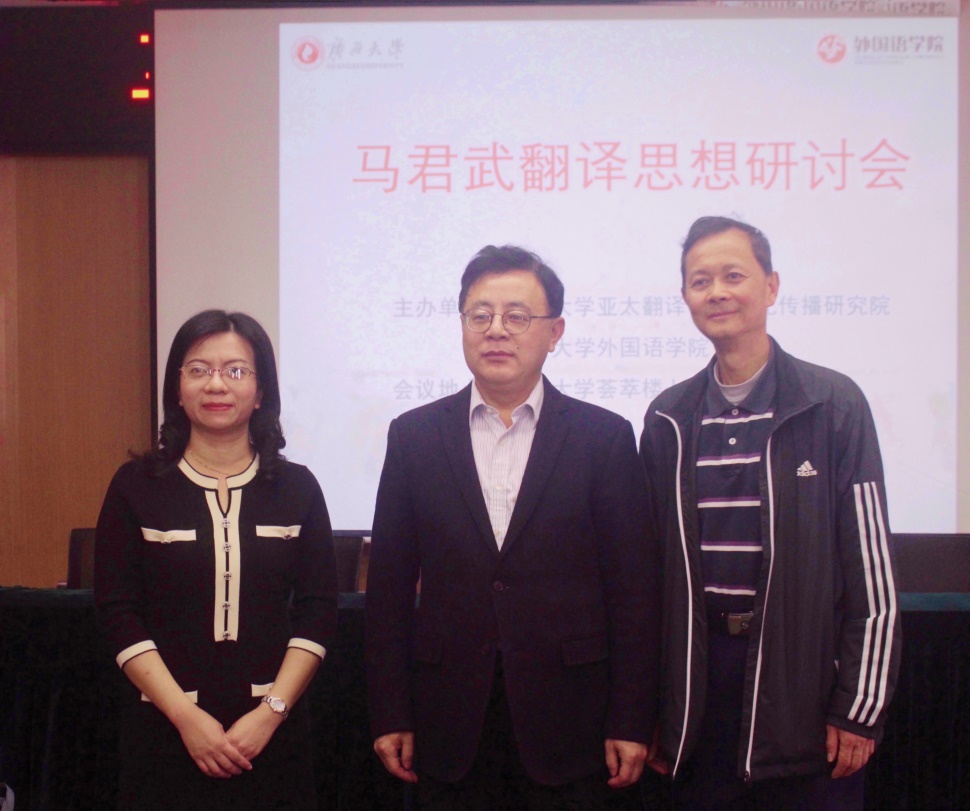12月12日上午,由太阳成集团tyc122cc亚太翻译与跨文化传播研究院与太阳成集团tyc122cc主办的马君武翻译思想研讨会于公司顺利举行。研讨会围绕 “马君武翻译思想与翻译实践研究”展开,来自全区多所高校的专家教授齐聚一堂,就会议主题作主旨报告、进行研讨,吸引了百余名高校教师与学子共同参与。