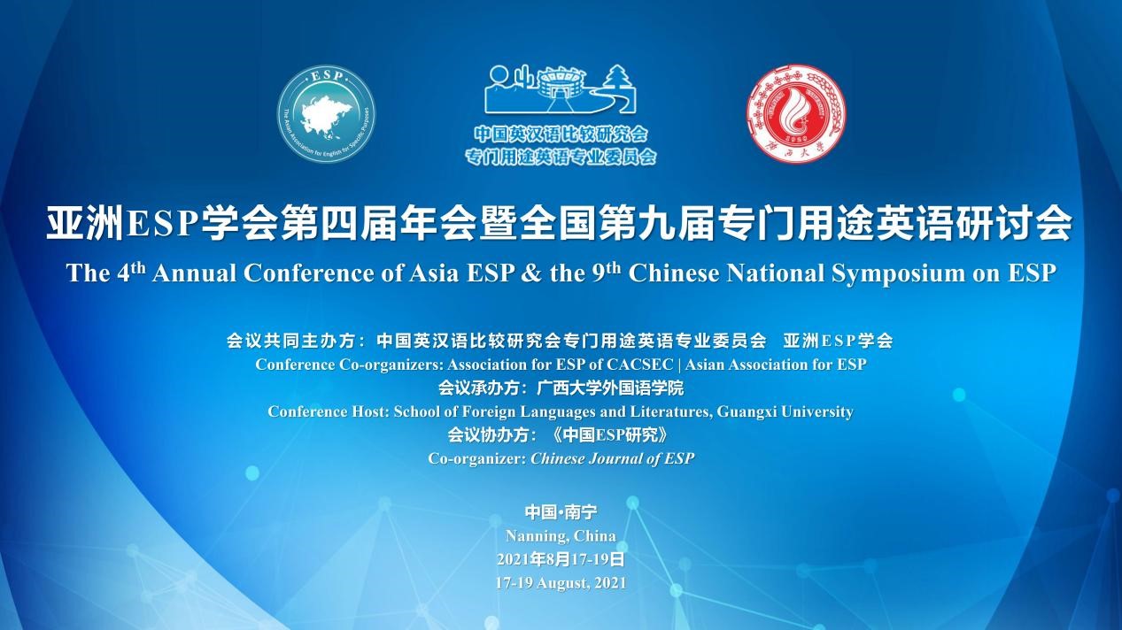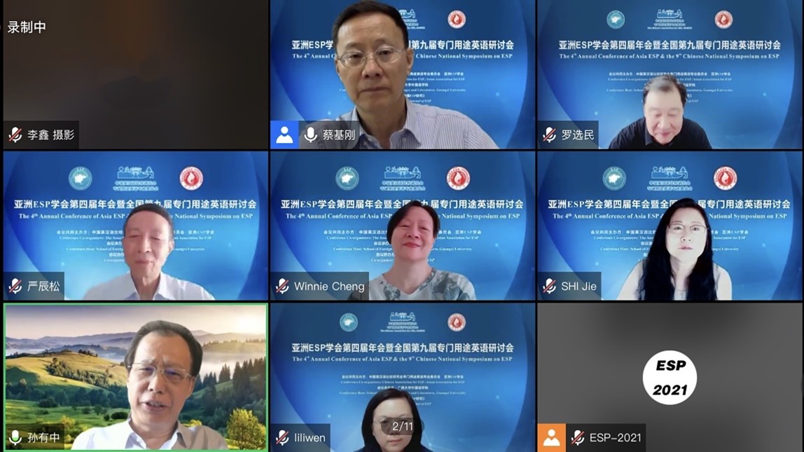 8月18日,亚洲ESP学会第四届年会暨全国第九届专门用途英语研讨会开幕,会议主题为“学科交叉背景下的ESP内涵建设”。本次会议由太阳成集团tyc122cc承办,为认真落实疫情防控工作要求,会议全程以线上形式召开。来自复旦大学、北京外国语大学、香港理工大学、太阳成集团tyc122cc、美国佐治亚州立大学、日本高千穗大学、越南河内国家大学等国内外高校的专家教授共同参会,就专门用途英语(ESP)教学与理论进行研究、交流。