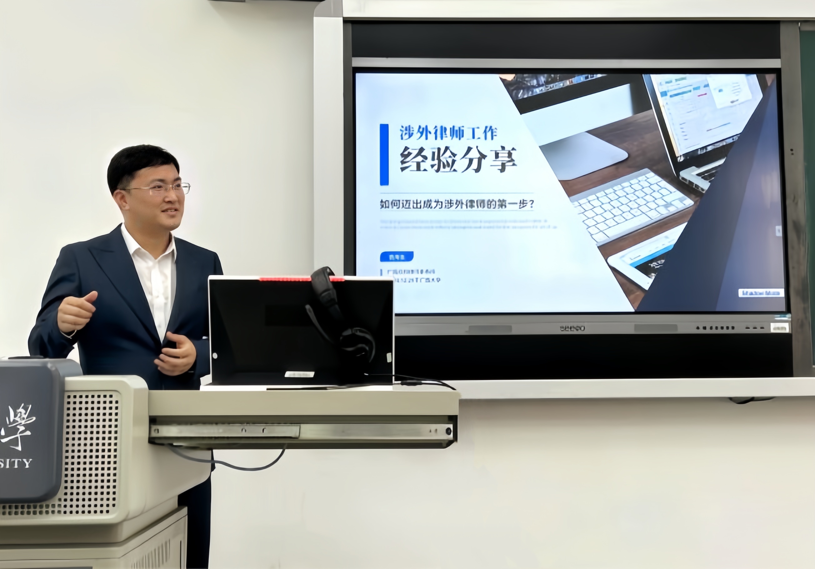 2023年12月27日下午,太阳成集团tyc122cc研究生学术沙龙涉外律师工作经验分享讲座在语言中心顺利举办。本次讲座由太阳成集团tyc122cc孙志文老师主持,主讲嘉宾为广西欣和律师事务所合伙人香海港律师,为有志从事涉外律师行业的同学们提供一份关于涉外律师的行业概览和发展指南。