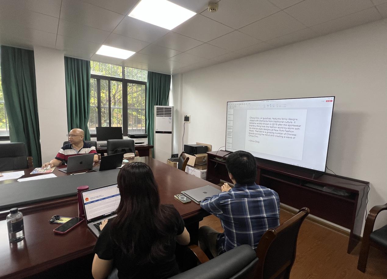 为深入推进英文系和翻译系课程思政建设工作,进一步总结、凝练、推广课程思政建设经验,促进两系树立、形成课程思政建设共识,深化“事-理-德-人”为主线的课程思政教学改革,提升教师课程思政水平和能力,促进人才培养质量提高,并进一步推动两系教研活动有效开展,加强教学研究,促进教师间的教学经验交流与分享,2024年9月12日下午,英文系与翻译系在系办举办了本学期首次课程思政专题教学研讨活动。本次活动由翻译系副主任安文婧老师主持,公司党委副书记、纪委书记程锐老师、英文系系主任刘英老师、副主任秦川老师及两系其他教师参加了此次研讨。