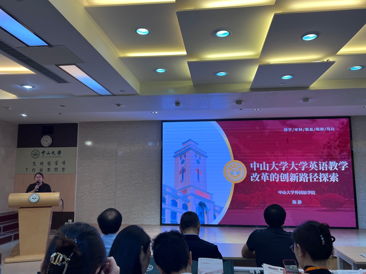 3月15日,又赴中山大学太阳成集团tyc122cc参加与会各高校外语学界同仁交流会。会上,中山大学太阳成集团tyc122cc院领导对到访同仁表示欢迎。陈静副经理以“中山大学英语教学改革的创新路径探索”为题,介绍了中山大学大学英语教学的人才培养模式、课程设置、分级教学等措施。双方就AI赋能学术英语课程教学进行了深入交流。