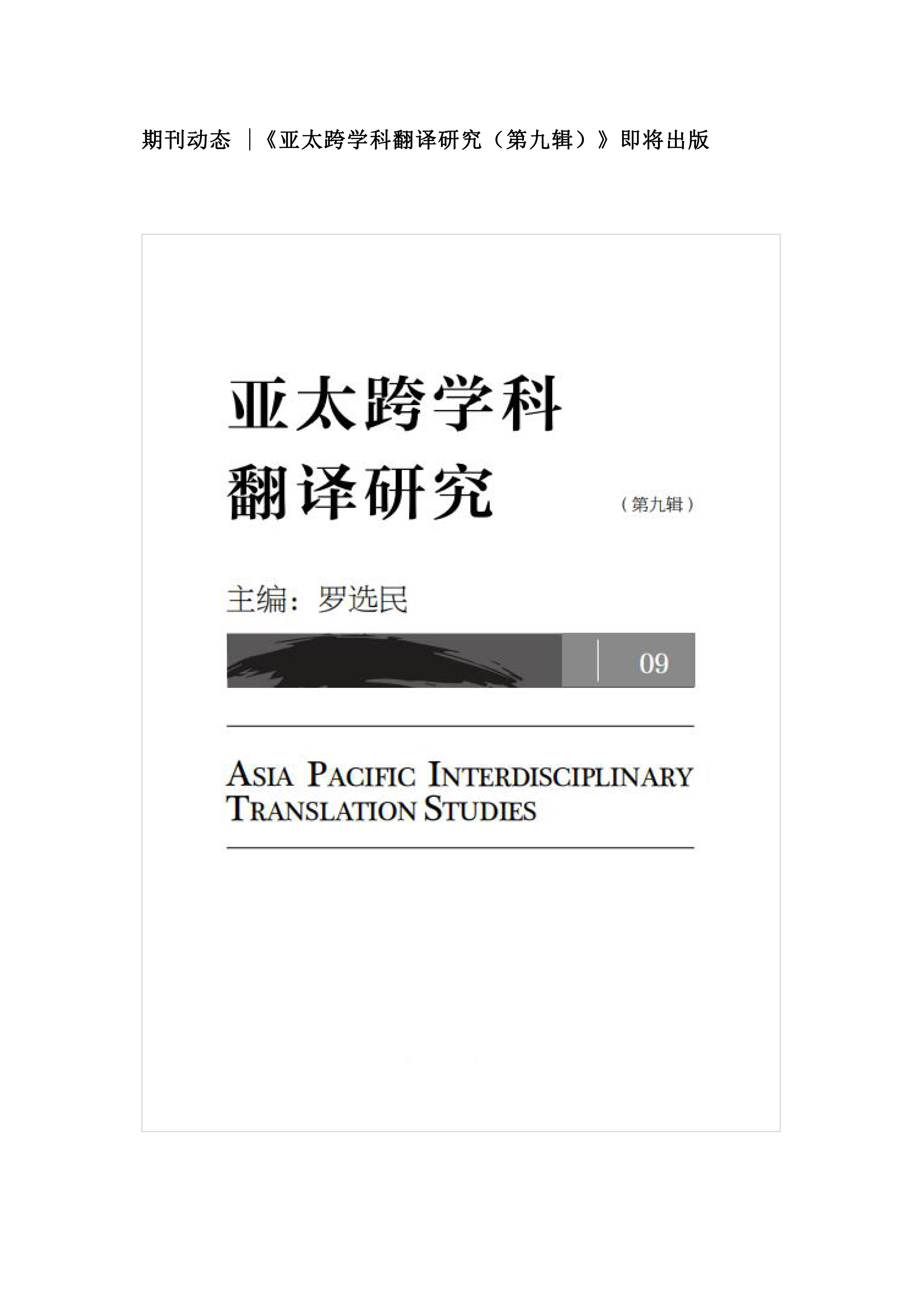 宣传预告-亚太跨学科翻译研究(第九辑).docx