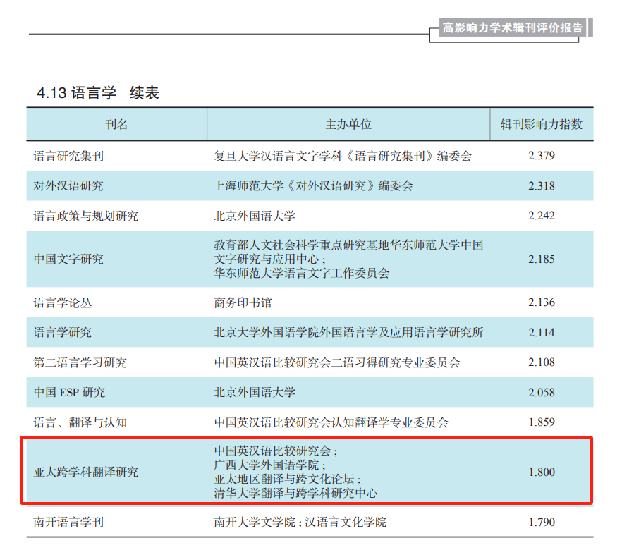 公司罗选民教授主编《亚太跨学科翻译研究》入选2024年度高影响力学术辑刊,彰显学术新高度。