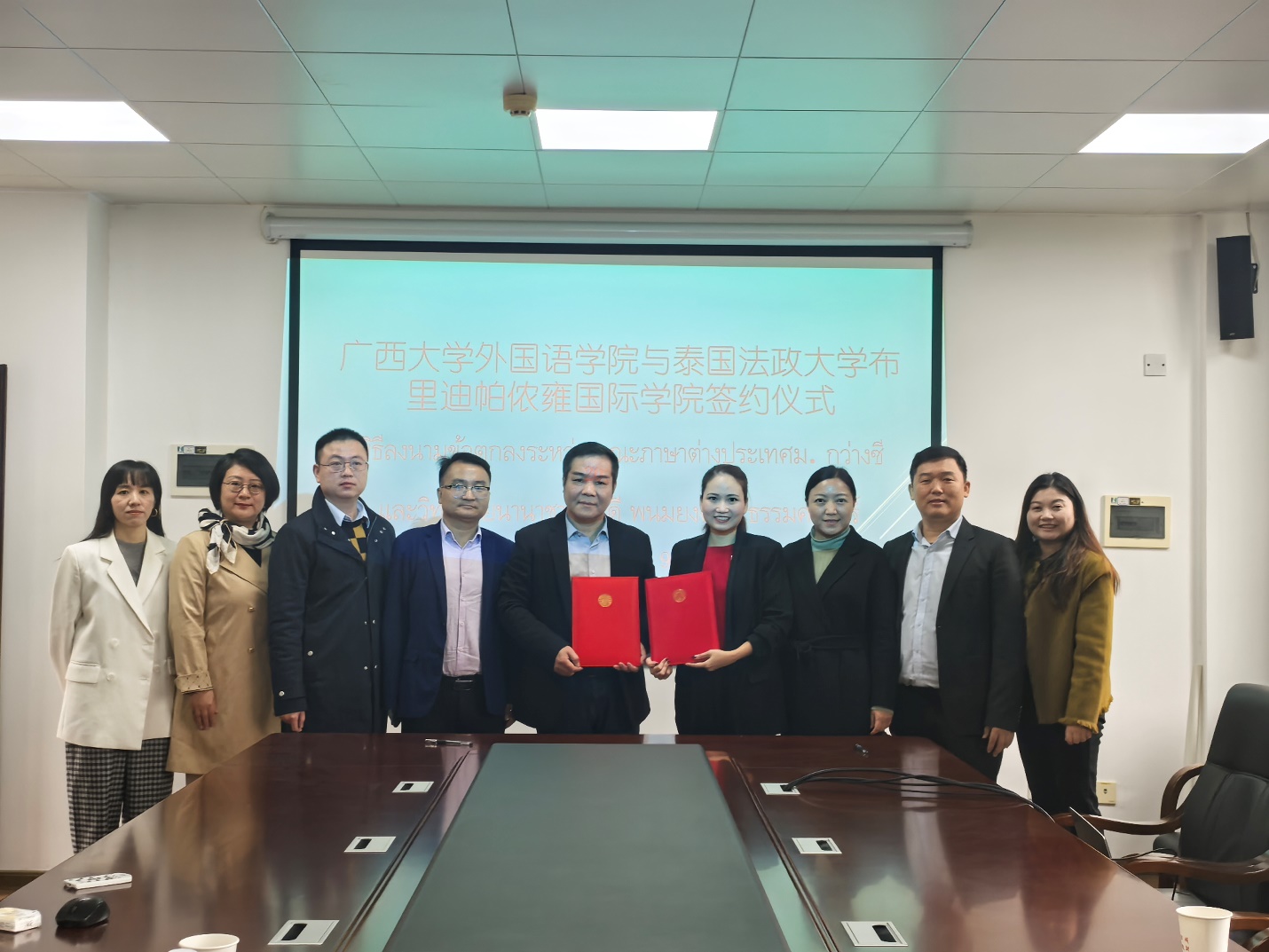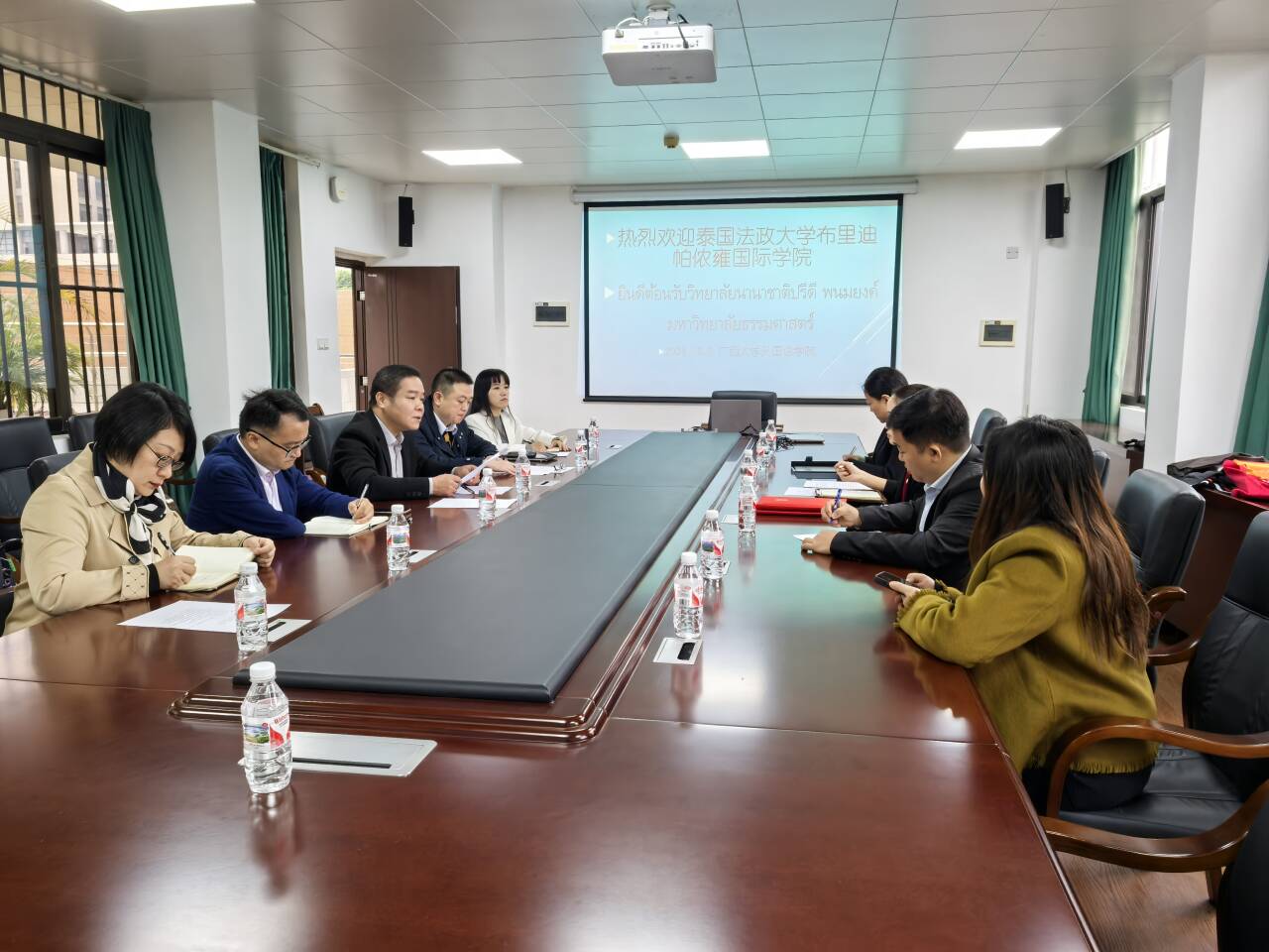 2024年12月9日,泰国法政大学布里迪帕侬雍国际公司(以下简称法政大学国际公司)到公司开展交流访问活动并进行合作签约仪式。太阳成集团tyc122cc党委书记莫柏林主持座谈交流会,院党委副书记程锐、经理助理曾薇、东南亚语系主任郑海宁、泰语专业教师李兴红参加活动。