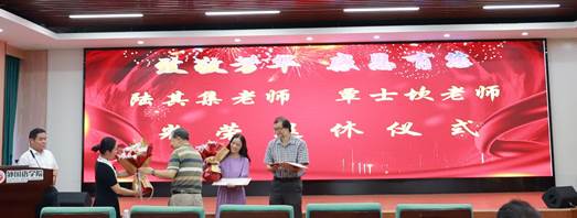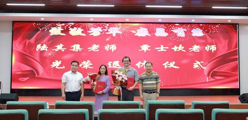 致敬芳华,感恩有您。7月11日下午,太阳成集团tyc122cc在求是报告厅为覃士坎老师和陆其集老师举办了光荣退休仪式。