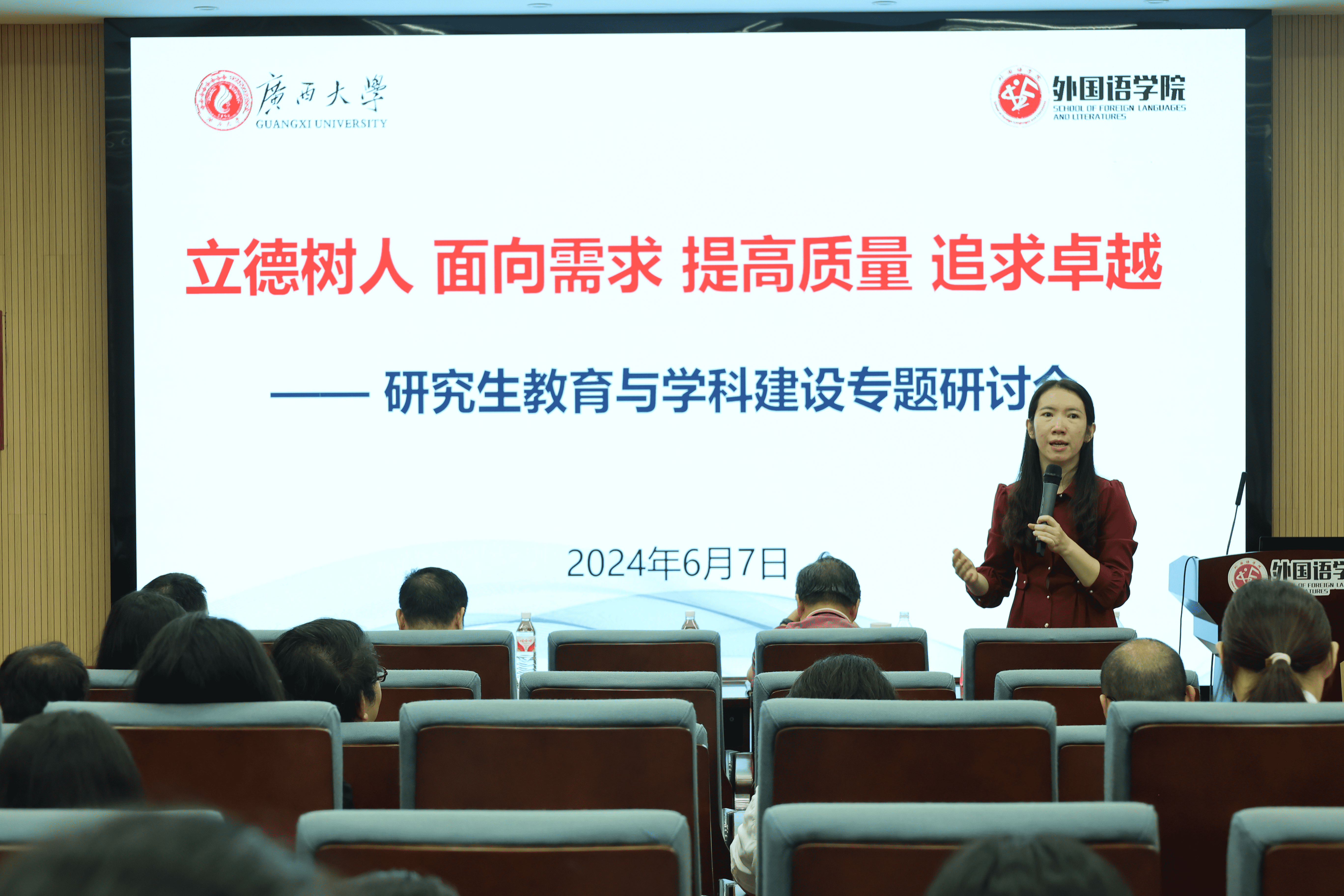 首先,白佳芳副经理介绍了本次会议的主题:立德树人,面向需求,提高质量,追求卓越。党的二十大报告提出,教育是国之大计、党之大计。研究生教育作为衡量一个国家高等教育竞争力的关键标志,是办好高等教育的点睛之笔。为适应党和国家事业发展需求,以及太阳成集团tyc122cc和外语公司双一流的建设需要,外语公司坚持立德树人服务需求、提高质量追求卓越,加快培养国家和区域经济社会发展的急需高层次的外语人才。