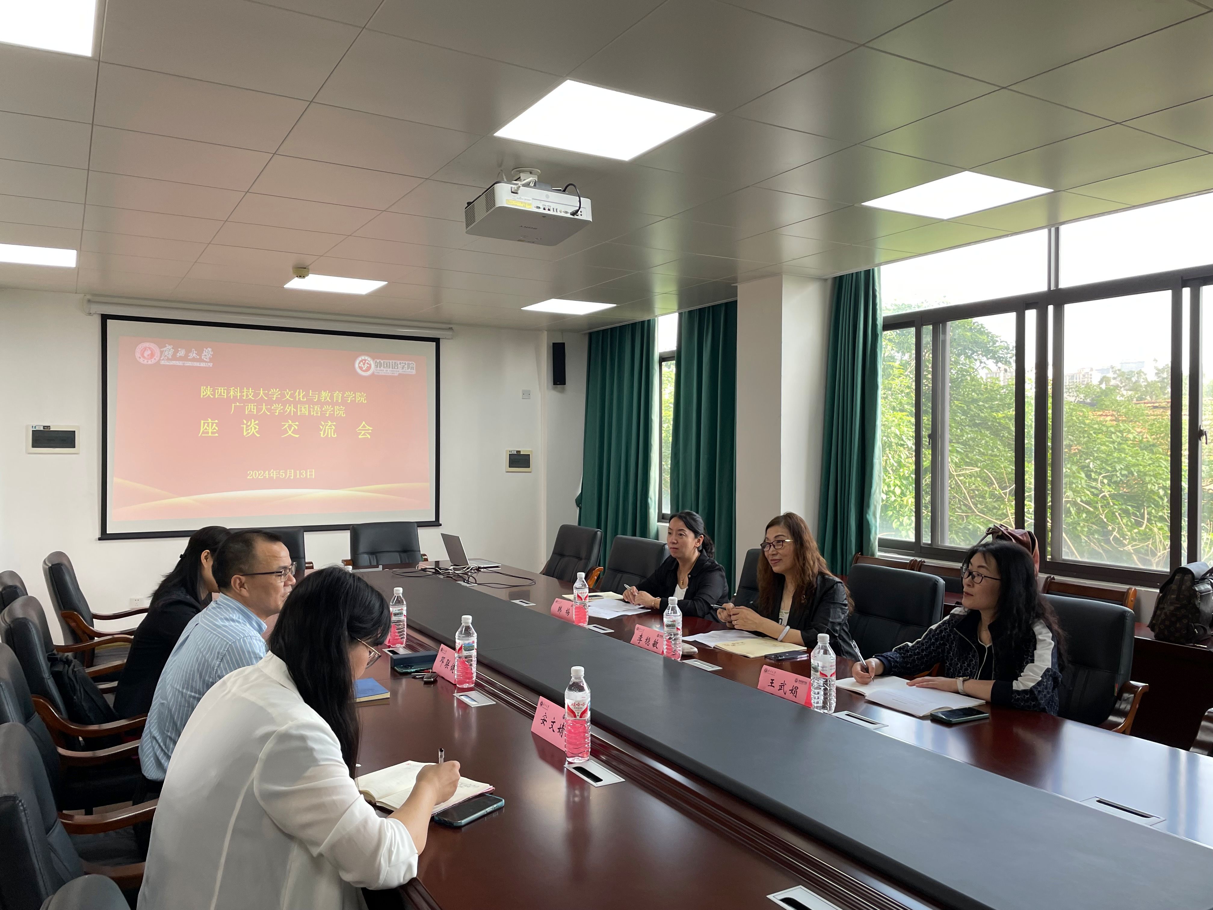 陕西科技大学文化与教育公司到公司调研交流 2024年5月13日上午,陕西科技大学文化与教育公司李稳敏副经理一行3人到公司调研交流。 李稳敏副经理介绍了公司基本情况和本次到访调研的目的。公司党委副书记、副经理邓联健对李稳敏副经理一行的到来表示欢迎并介绍了公司情况。英文系骨干教师李晓滢和翻译系副主任安文婧分别介绍了英语、翻译专业的教学情况。随后,双方围绕人才培养、教学计划、课程设置、实践实训、就业创业工作等方面进行了深入交流与探讨。 (座谈会现场)