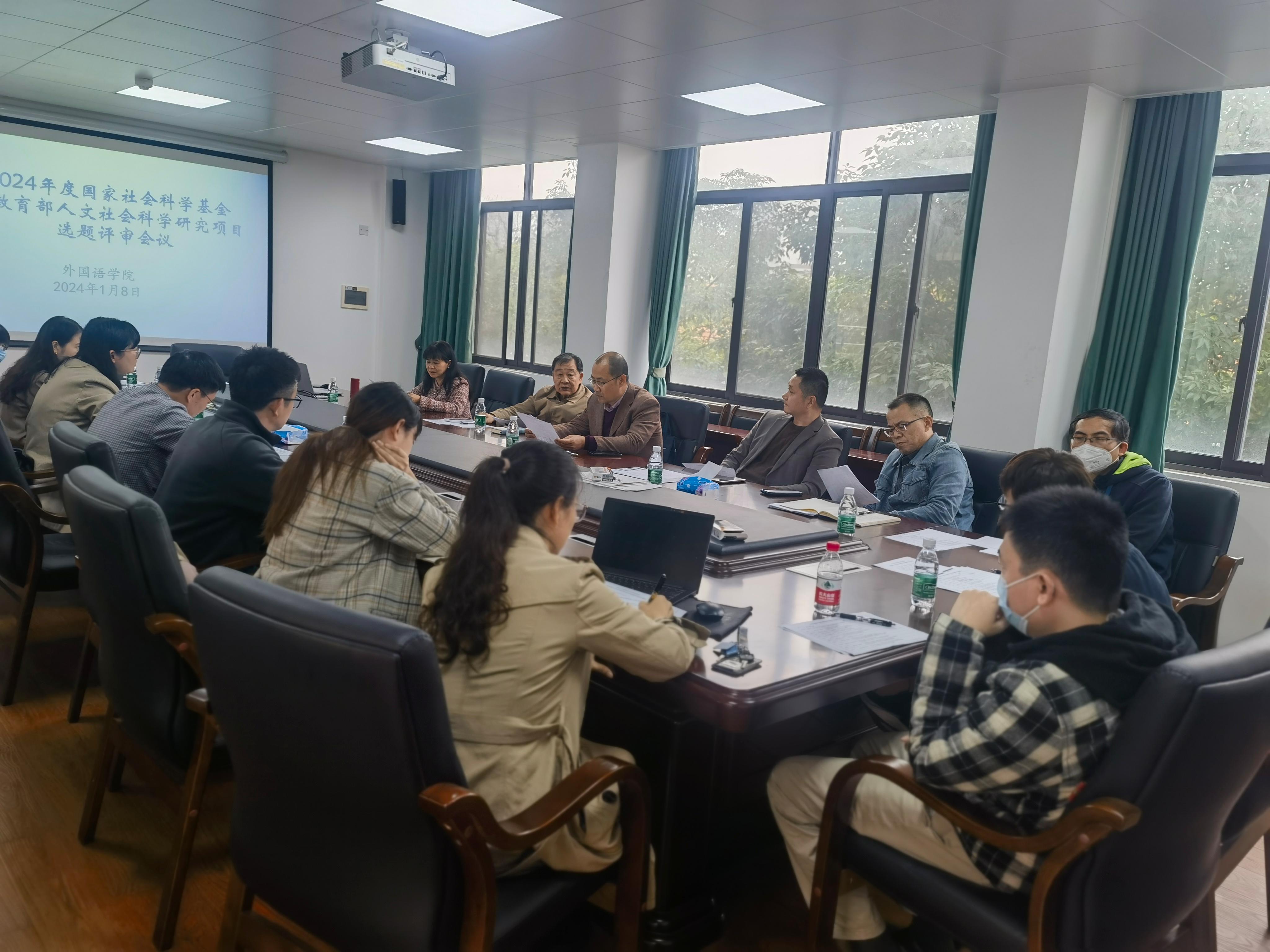 1月8日下午,外国语公司在邵逸夫楼301会议室召开2024年度国家社科基金项目申报选题汇报会。会议由罗选民经理召集,分管科研工作的梁燕华副经理主持,公司各学科方向科研骨干出席本次会议。