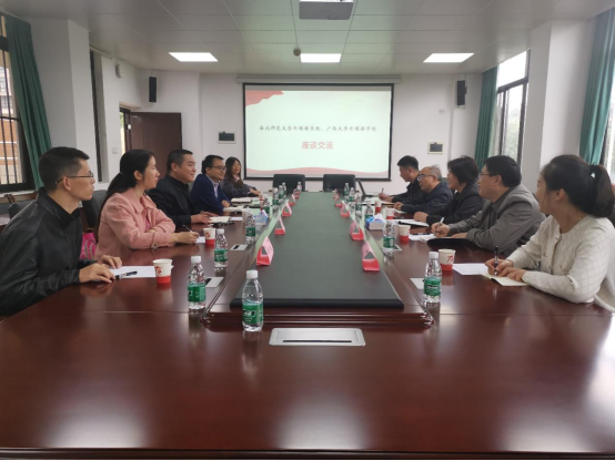 座谈会上,公司党委书记莫柏林对崔凤梅书记一行的到来表示欢迎,并向来访嘉宾介绍了公司的概况。随后,双方就样板党支部的申报与建设、公司“三全育人”工作机制和经验、外语学科发展与人才培养、翻译硕士点建设等方面进行了交流。