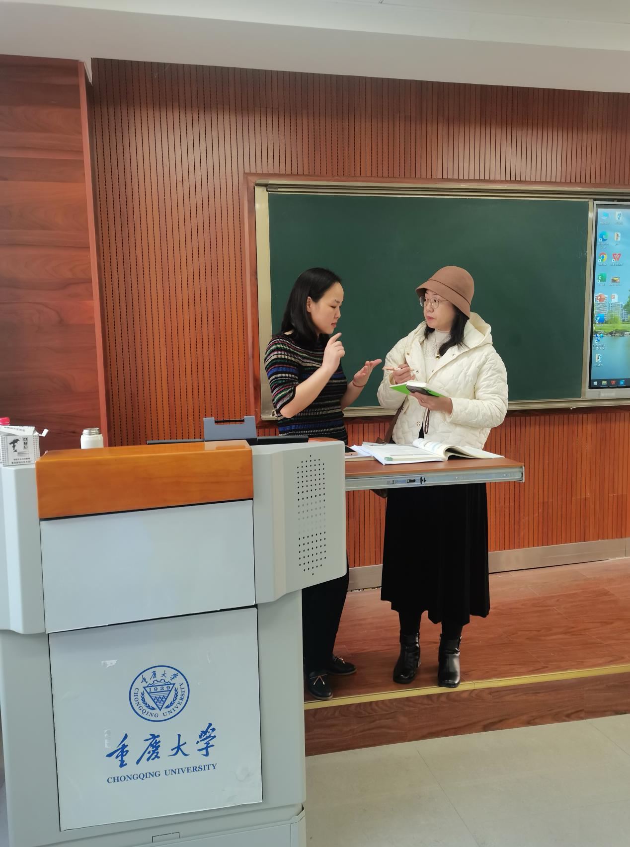 为全面深化大学外语课程改革,提升骨干教师教学管理水平,2023年11月19-21日大学外语系主任曾薇老师,教研室主任黄晔明老师、韦丽春老师和廖建思老师一行四人前往重庆大学太阳成集团tyc122cc大学外语教育中心展开深入调研学习和听课座谈活动。重庆大学太阳成集团tyc122cc主管大学外语副经理李小辉教授以及课程组组长何欣怡老师、郭丽静老师、雷蕾老师、谢佳老师及外语教学中心骨干教师热情接待了调研组。