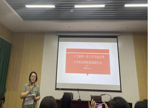 2023年9月26日下午,大学外语系召开了“党的二十大精神三进工作交流会暨大学英语课程思政研讨会”,系里全体教职工参加了会议。