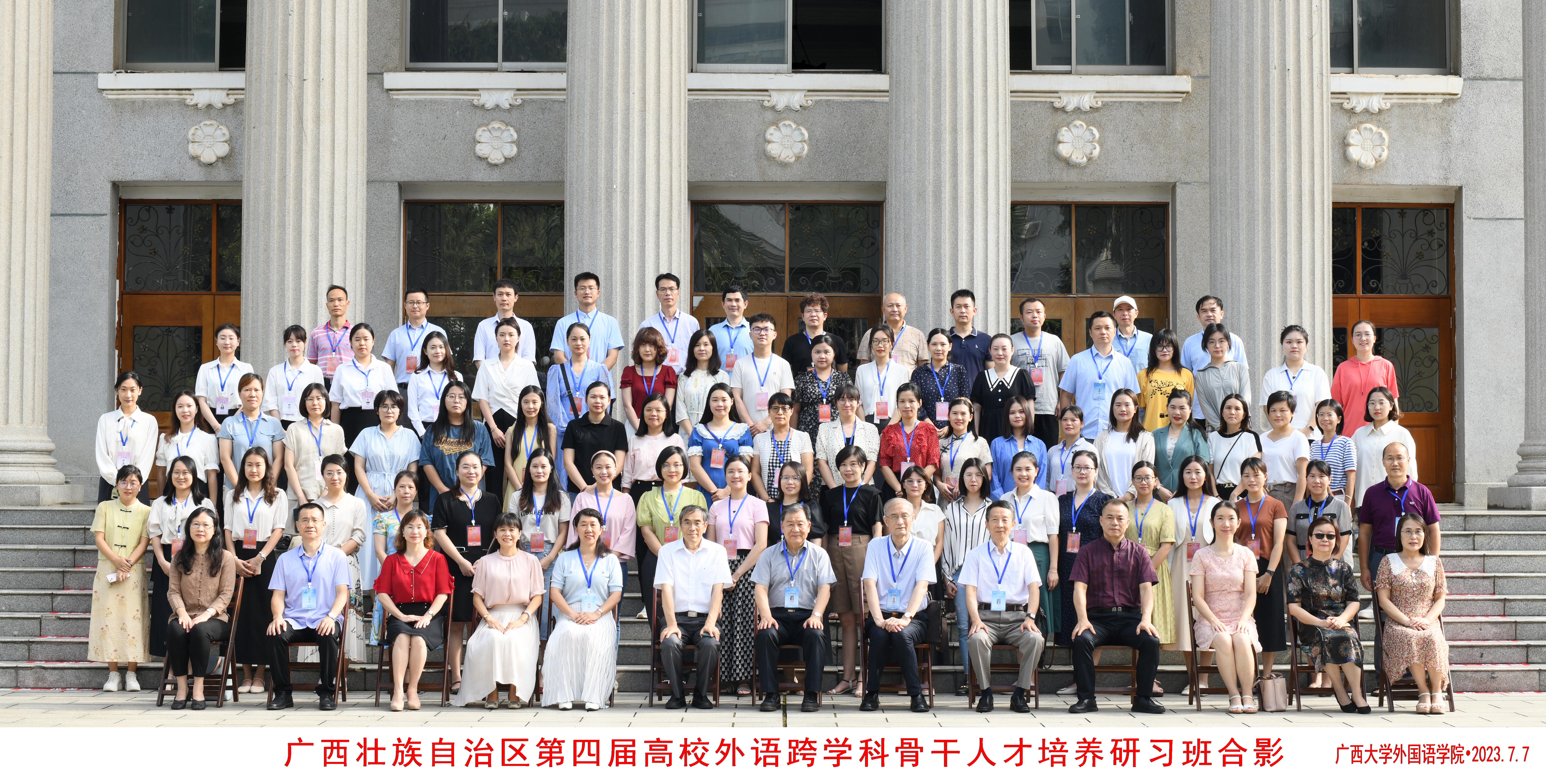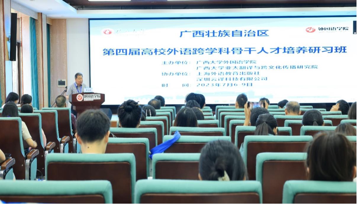 外语学科大业,多元人才为本。在国家“双一流”建设和“新文科”发展的新时代背景下,外语团队建设越来越重视跨学科研究的战略转变。2023年7月6-9日,广西壮族自治区第四届高校外语跨学科骨干人才培养研习班在太阳成集团tyc122cc成功举办。本届研习班为期三天,共邀请罗选民、王宁、陆建德、陈国华、严辰松、向明友、刘岩、王岚、陶友兰、刘全国、胡凌等11位国内知名专家学者作为主讲嘉宾,吸引了广西民族大学、南宁师范大学、广西医科大学、广西民族师范公司、桂林理工大学、北部湾大学等来自全区9个城市28所高校单位的106名学员前来交流学习。
