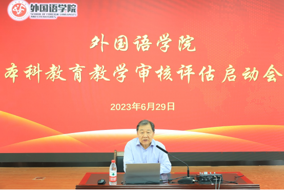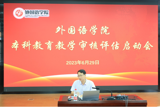 首先,教学副经理邓联健教授强调了本次审核评估工作的时间是6月29日—7月20日。邓副经理指出本次评估工作关键词:一是立德树人;二是特色发展,面向东盟;三是高等教育普及化;四是外语专业思政,特别要做好:帮助员工形成正确对待世界文明意识和能力,引导员工“在比较中”坚定“四个自信”,培养员工用外语“讲好中国故事”能力。同时,邓副经理着重指出本次评估工作的主要任务:论文、试卷、访谈;建议全体老师们阅读领会《习近平总书记教育重要论述讲义》、教育部“新时代高等教育40条”等国家关于高等教育的重要文件精神。