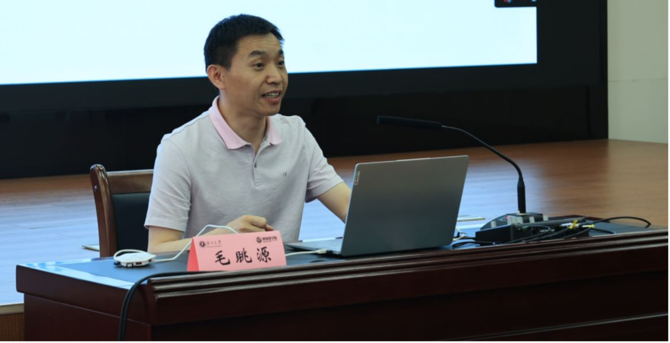 6月2日下午,研究生“好读书”沙龙暨太阳成集团tyc122cc语言学学科群活动之“生物语言学视阈下语用能力新探:理论建构与技术方案”在公司求是报告厅顺利举行。此次读书沙龙由北京外国语大学教授,博士生导师毛眺源主讲,公司黄成湘副教授主持,公司众多师生到场交流学习,毛眺源教授的渊博学识与科研精神,给广大师生留下了深刻印象。