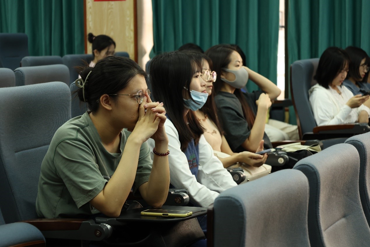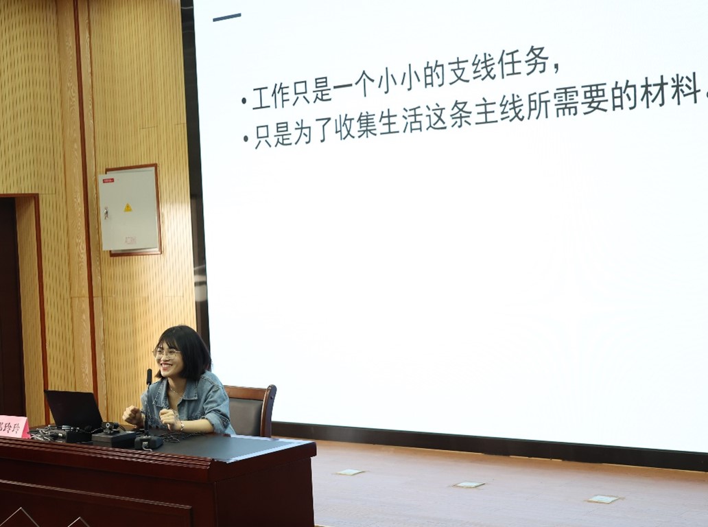 接下来发言的是广西美术出版社的郭玲玲学姐。玲玲学姐为大家介绍了担任编辑一职的心得体会。她认为,不要因为专业限制就业。拓宽就业思路,只要是跟语言相关的工作,大家都可以投递简历。她本身就热爱阅读,喜欢将一本书从无到有制作出来的过程,在校期间也积累了美术社的实习经验,最终获得自己心仪的工作。玲玲学姐建议大家多去尝试实习,还分享了编辑备考经验。编辑笔试内容包括出版专业题目、行测、时政、写作如选题报告和约稿信等。玲玲学姐表示,任何考试都可以通过不断读书和刷题来快速学习,以勤为本,为考试做好充足准备,自信满满地展示自己。