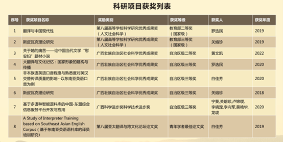 近年来,公司研究生导师取得了丰硕的科研成果,现有国家社科基金重大项目子课题1项、一般项目5项、西部项目4项,省部级项目15项。荣获第八届教育部人文社会科学优秀成果奖二等奖、三等奖各1项,广西社科优秀成果奖、科学进步奖10余项。
