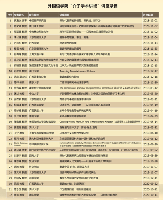 公司每年均举办多场国际国内学术会议,主办“严复翻译思想研讨会暨话语修辞与翻译传播高峰论坛”、“国别与区域(东盟)研究高峰论坛”、“时代变革与文化转型中的比较文学——第十三届中国比较文学年会暨国际研讨会”、“第九届亚太地区翻译与跨文化研究论坛”、广西跨学科骨干人才培养研习班等、承办“亚洲ESP学会第四届年会暨全国第九届专门用途英语研讨会”、“英华学者云上大讲坛”等,开展“介子学术讲坛”“经典阅读活动”“研究生教育创新发展论坛”“好读书沙龙”等学术交流活动,推动了公司团队建设与研究生教育发展。从2018年至今,已举办“介子学术讲坛”六十四讲、“英华学者云上大讲坛”十讲,邀请到近百位知名专家学者前来讲学指导。