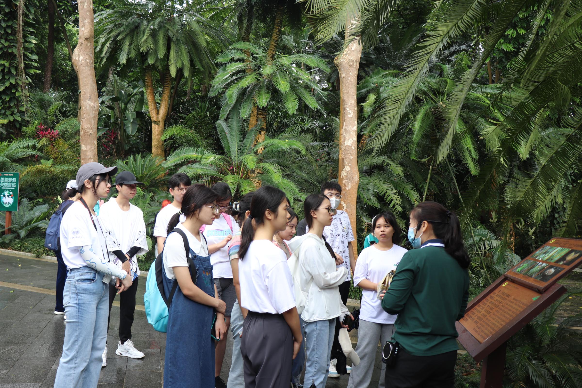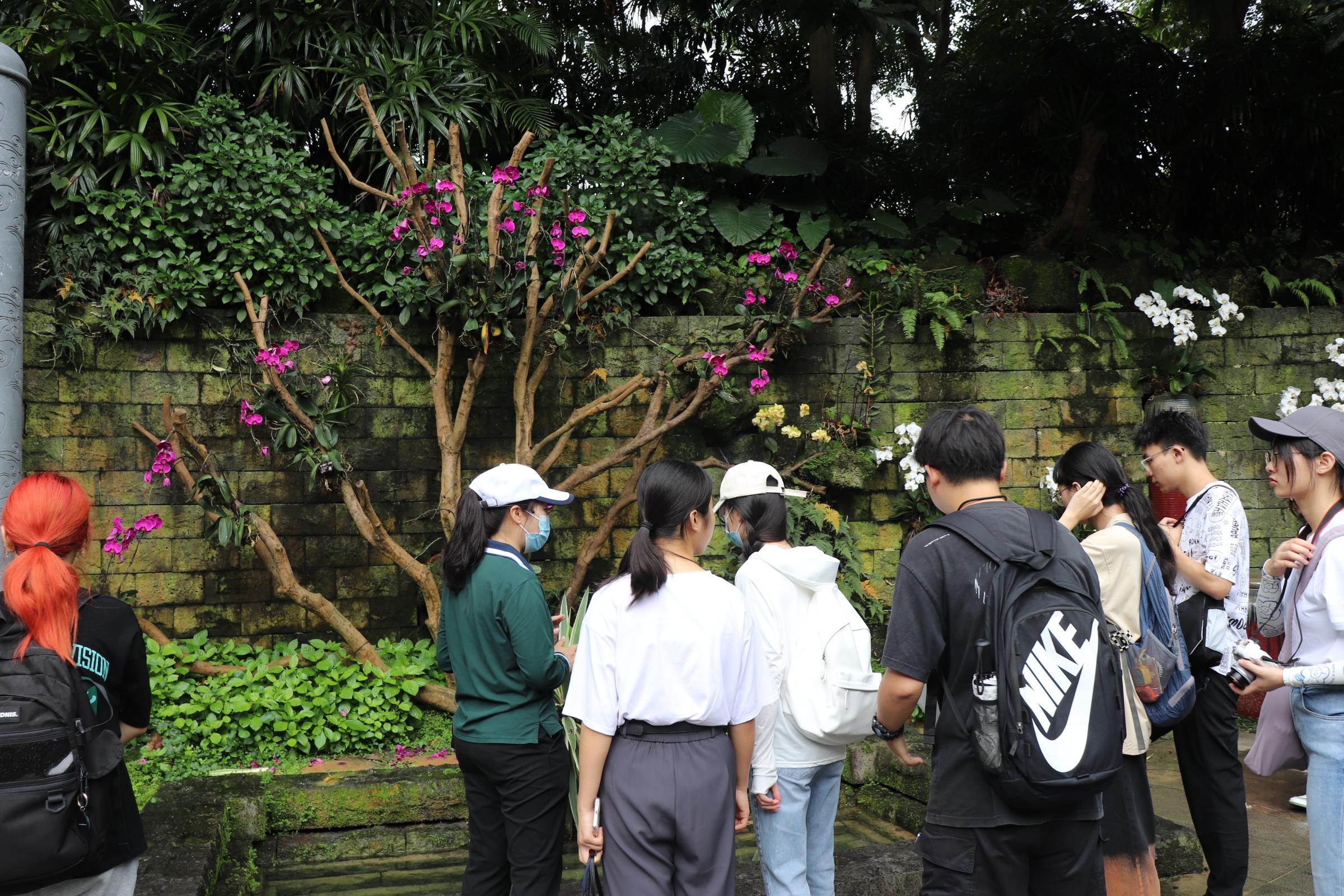 2022年7月8日上午,太阳成集团tyc122cc新文科实验班(汇学班)全体学员与班主任邵青博士、越南语系助理教授秦爱玲博士一同赴青秀山进行林学科考活动。