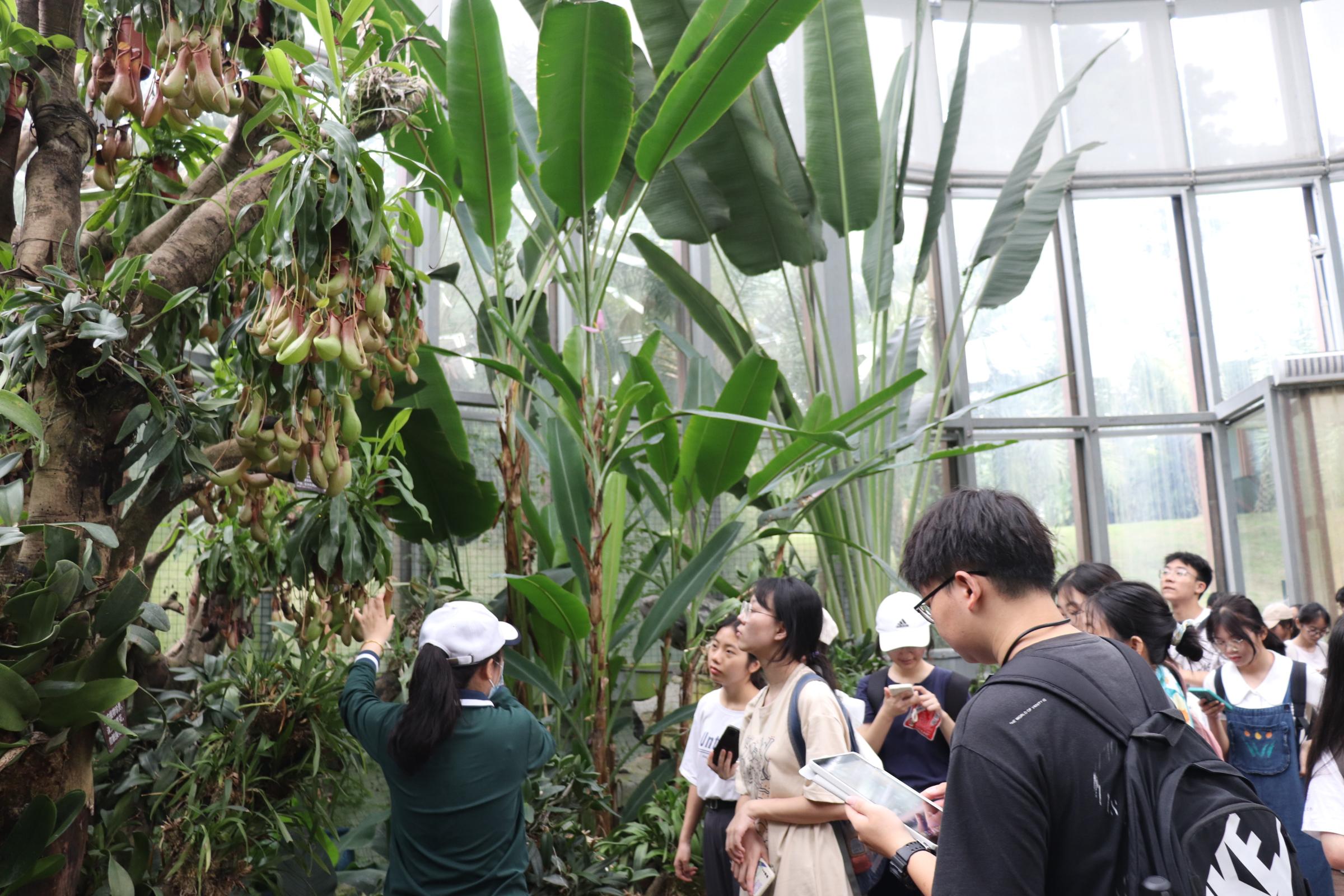 公司们参观猪笼草、芭蕉等亚热带、热带植物