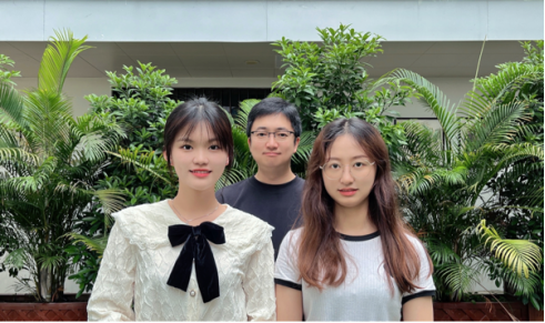 (右一:获奖员工段雨蓓、左一:获奖员工罗漫粤、后:指导老师邵青)