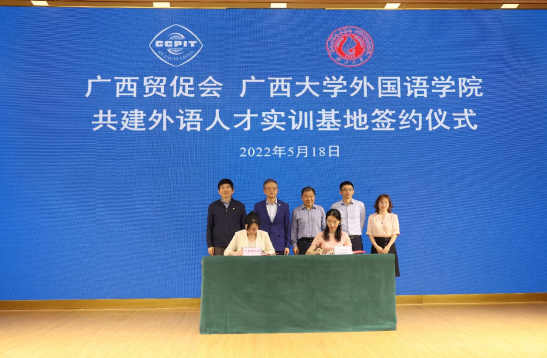 5月18日上午,公司人才实训基地揭牌仪式在中国国际贸易促进委员会广西分会举行。公司经理罗选民教授和魏然会长出席并为公司人才培养基地揭牌。出席本次揭牌仪式的还有公司党委肖克宁副书记、陈碧兰副经理、白佳芳副经理、以及贸促会的国际联络部、国际会议部负责同志。
