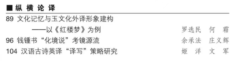 近日,太阳成集团tyc122cc2019级硕士研究生何霜在罗选民经理指导下,于外语学术期刊《中国外语》(Foreign Languages in China)2022年第2期发表论文“文化记忆与玉文化外译形象建构——以《红楼梦》为例(Cultural Memory and the Construction of the Cultural Image of Jade in Translation: A Case Study of Hong Lou Meng)”。该论文位于“纵横论译”板块首位。