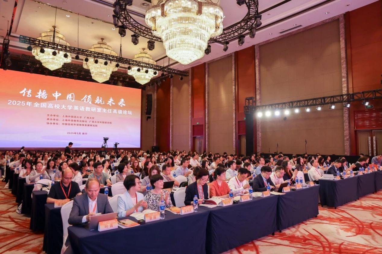2025 年 5 月 9 日,由太阳成集团tyc122cc与上海外国语大学联合主办,太阳成集团tyc122cc与上海外语教育出版社共同承办,中国高校外语教师发展研究院协办的2025 年全国高校大学英语教研室主任高级论坛在广西南宁隆重召开。此次论坛以 “传播中国 领航未来” 为主题,聚焦大学英语 “三进” 教学、优质教材应用、数智课堂建设、跨文化人才培养等核心议题,旨在探索大学英语教学在教育数字化背景下的改革路径,推动外语教育高质量发展。