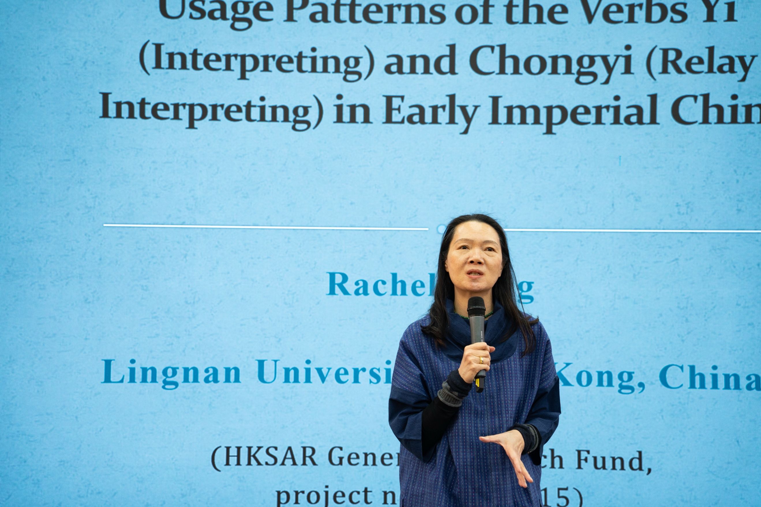在讲座中,龙教授以香港中文大学汉达文库数据库为研究基础,对175篇古代文献进行了系统梳理和定量分析。她指出,“译”主要用于描述中原王朝对外探索,而“重译”则集中出现在外国使者来华朝贡的叙事中。这一鲜明的使用差异不仅体现了古代语言使用的系统性和规律性,更反映出古代译者对“译”与“重译”的选用兼具灵活性与目的性。