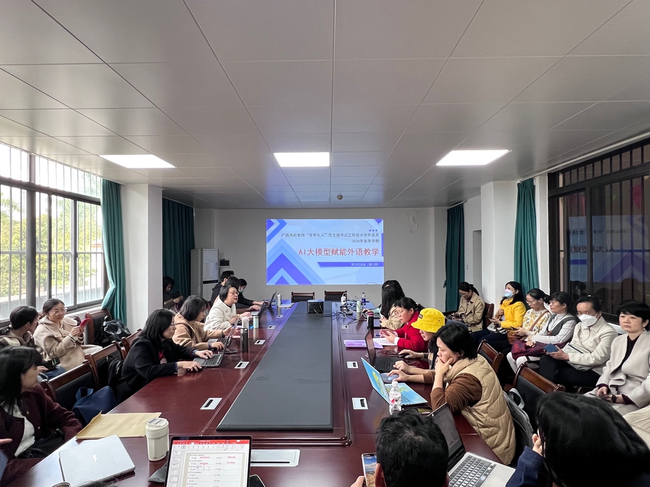 人工智能的飞速发展给教育领域带来了全新机遇与挑战。为帮助外语教师充分应用人工智能,3月19日,大学外语系召开广西高校教师“双带头人”党支部书记工作室——“AI大模型赋能外语教学”研讨会(第三期),系全体教师参加。