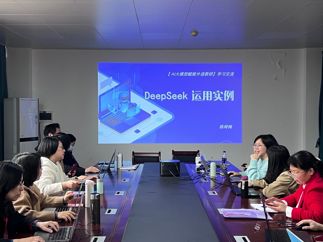 此前,大外系已经在“双带头人”党支部书记工作室指导下,组织了第一期、第二期研讨会活动,全体教师先后学习了外教社系列讲座“DeepSeek在外语教学与研究中的应用”和“AI大模型助力教材编写与教学实践”,并展开讨论。