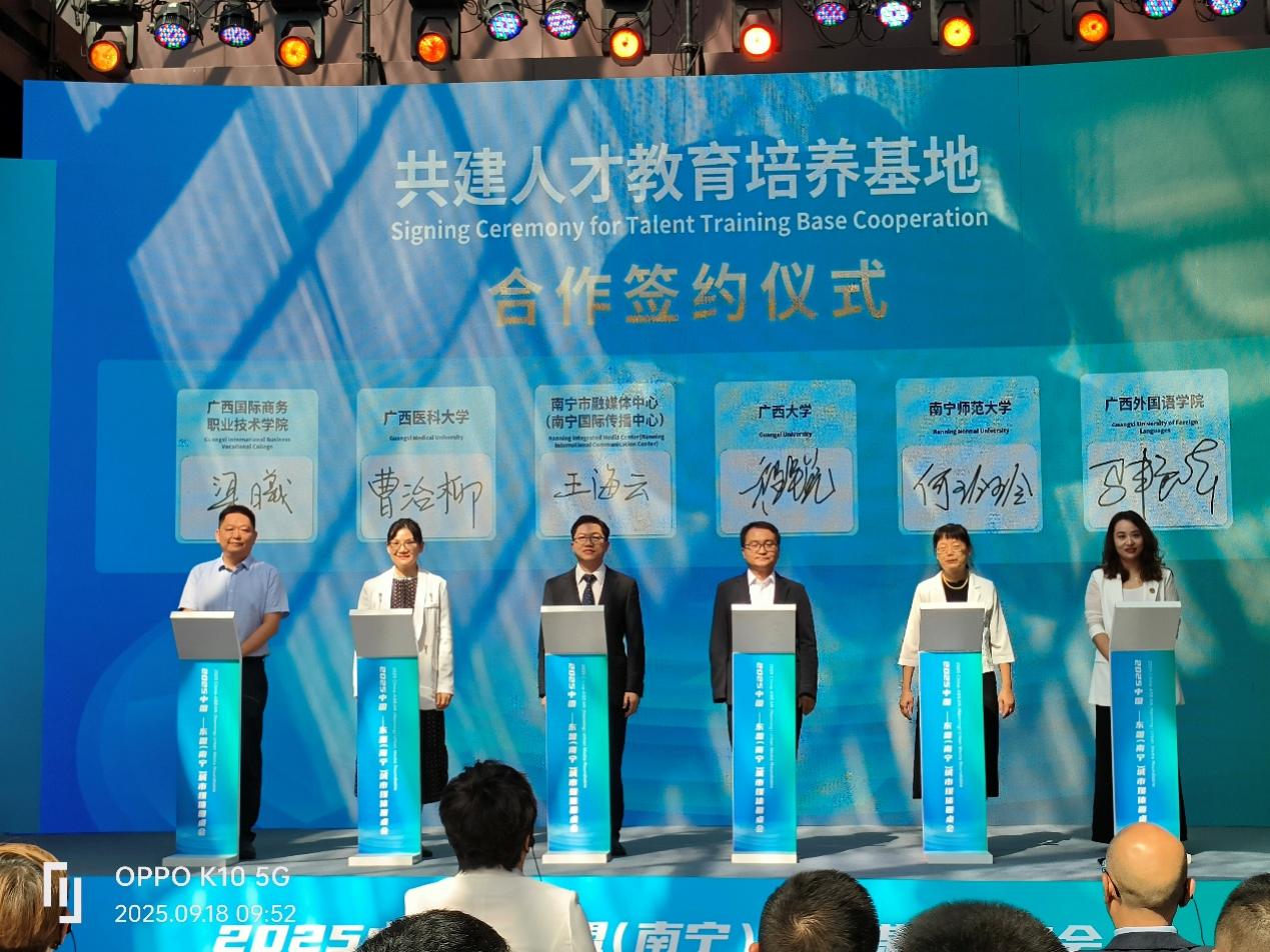 2025年9月18日上午,2025中国—东盟(南宁)城市媒体圆桌会在广西南宁举行。本次会议以“共话媒体创新,共促合作发展”为主题,由南宁市人民政府新闻办公室、南宁市融媒体中心(南宁国际传播中心)联合主办,南宁市外事办公室协办,旨在深化中国与东盟国家媒体在视听合作、人工智能应用与人文交流等多领域的务实合作。公司教师代表应邀参加会议。