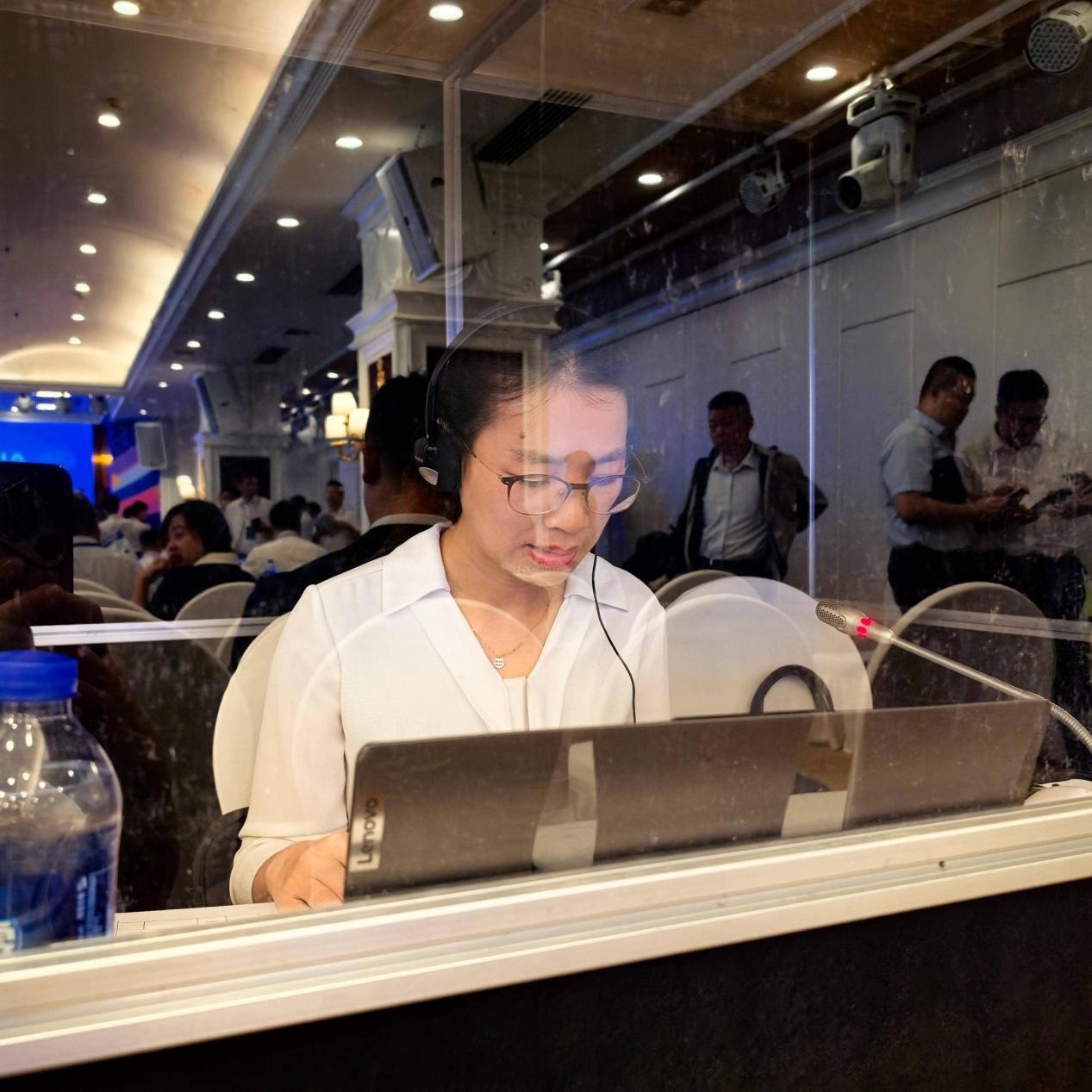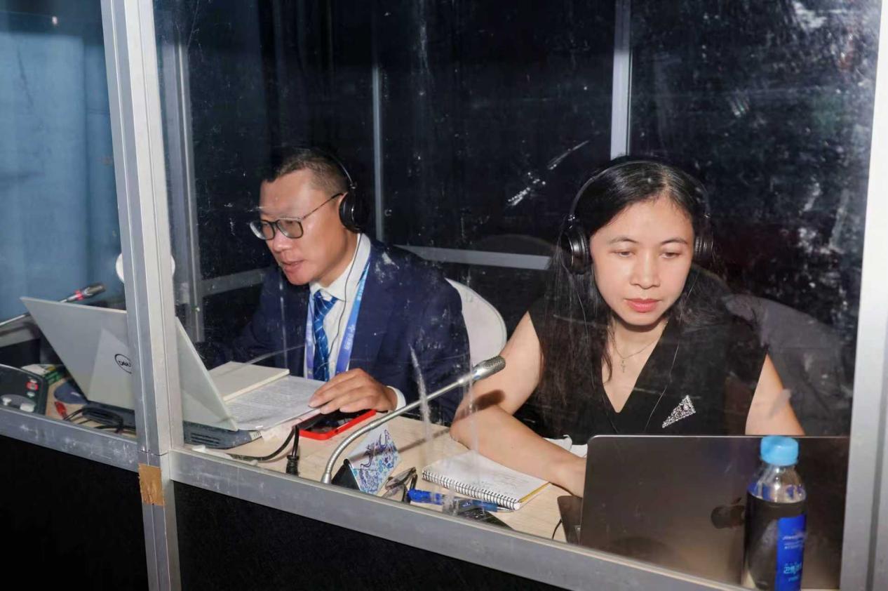 2025年9月18日泰语专业郑海宁老师(左一)为2025中国—东盟(南宁)城市媒体圆桌会议提供同声传译服务。