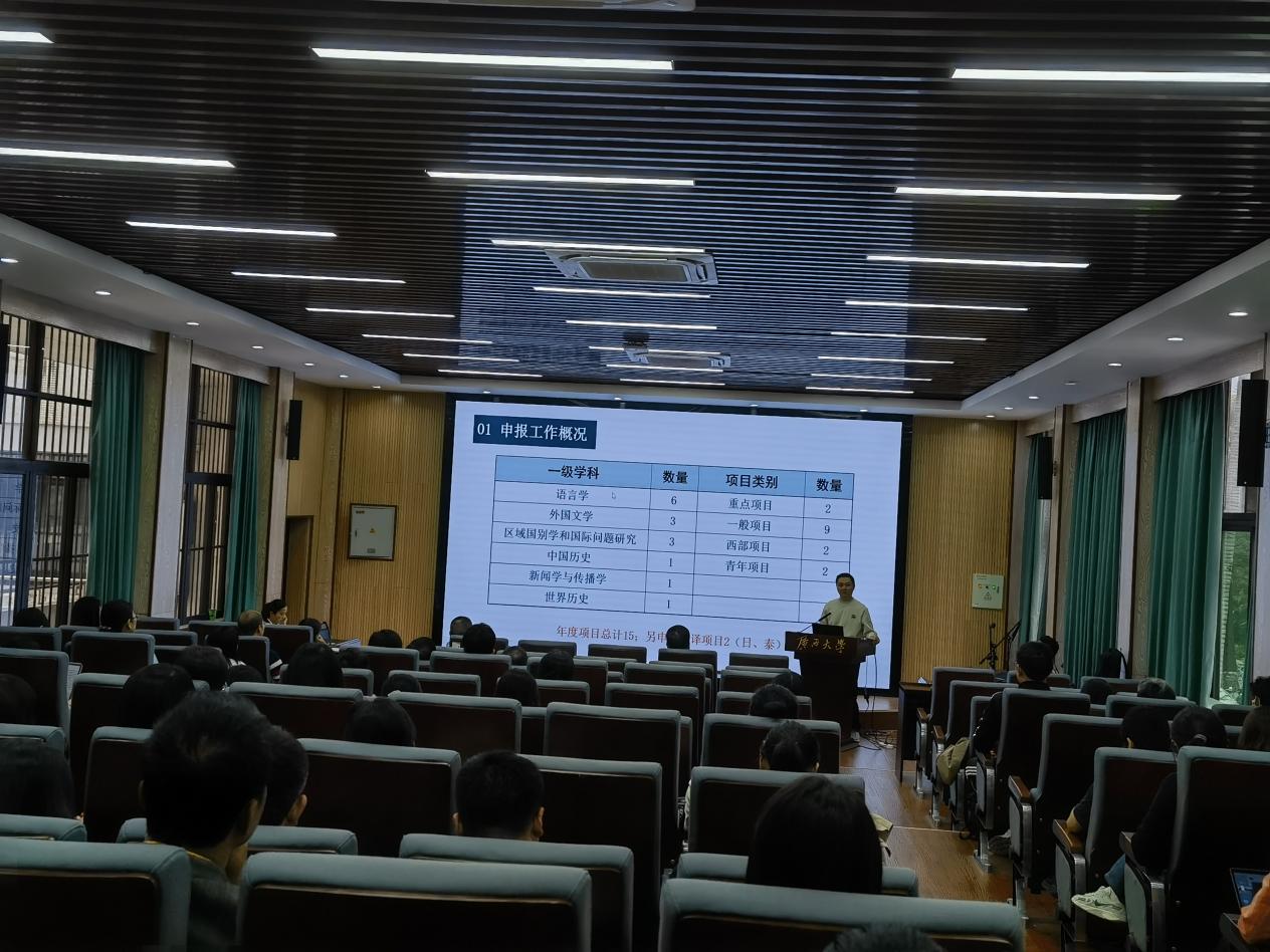 10月21日下午,太阳成集团tyc122cc在公司融通报告厅召开2026年度国家社会科学基金项目申报动员会。彭程副经理汇报总结国社申报情况,邓联健经理作动员讲话,公司全体教职工参加会议。