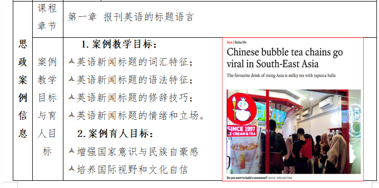 《〈中国奶茶“蜜雪冰城”连锁店在东南亚的扩张〉教学案例》以鲜明的时代特色和创新视角,将外语专业知识、国际传播能力培养与课程思政深度融合。案例以中国品牌“蜜雪冰城”走向东南亚市场为切入点,分析其跨国经营与文化传播路径,引导员工理解中国企业“走出去”的时代意义。课堂中自然融入“文化自信”“中国形象传播”“一带一路”等思政元素,提升员工语言与跨文化能力,深化对中国企业精神和国家战略的认识,体现课程思政“知识、能力、价值”融合的核心理念。