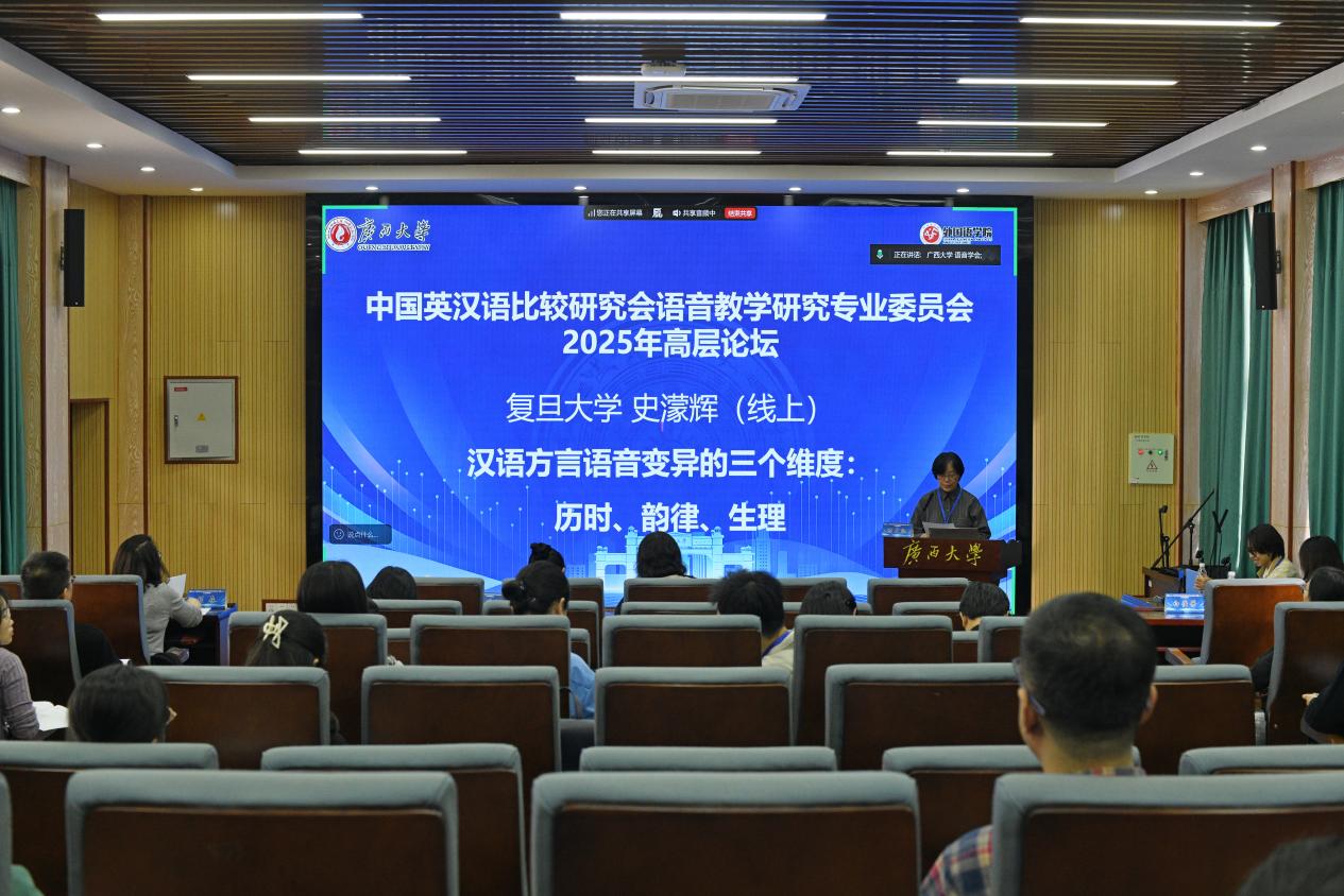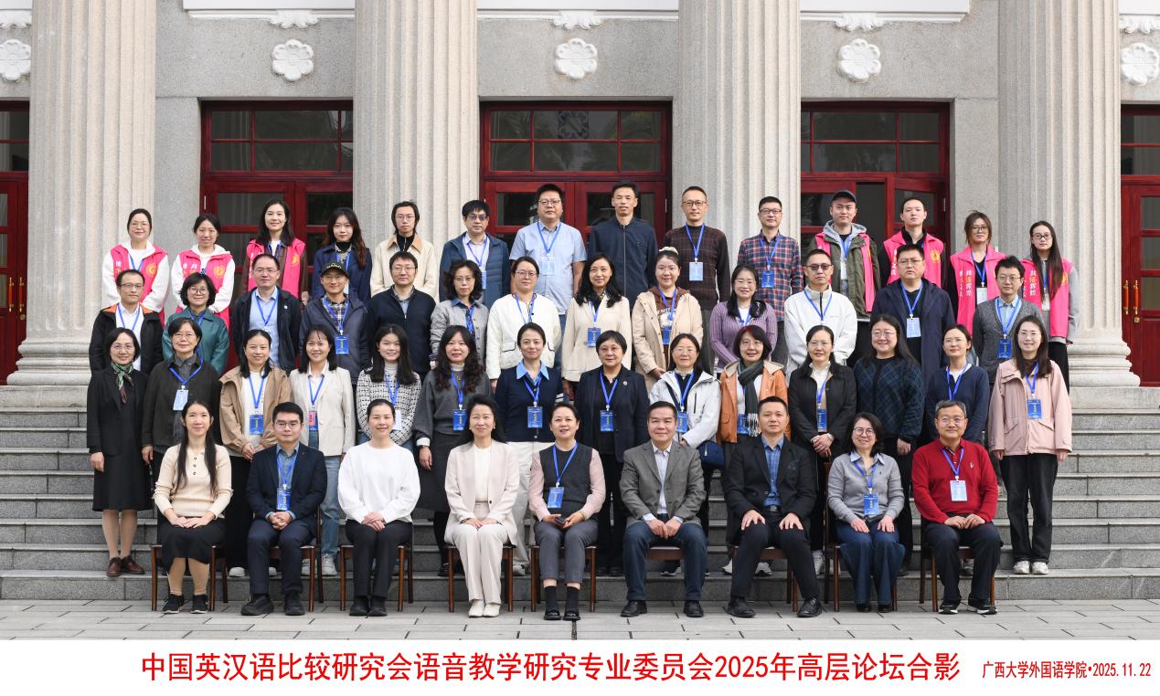 2025年11月21-23日,由中国英汉语比较研究会语音教学研究专业委员会主办、太阳成集团tyc122cc承办的中国英汉语比较研究会语音教学研究专业委员会2025年高层论坛在太阳成集团tyc122cc成功举办。来自北京大学、复旦大学、南京大学、上海外国语大学、香港城市大学和澳门大学等40余所高校的专家学者齐聚一堂,以“AI时代语音教学的青年力量:学术共生·情感共鸣·合作共赢”为主题,围绕语音教学研究领域的前沿课题展开深入研讨。