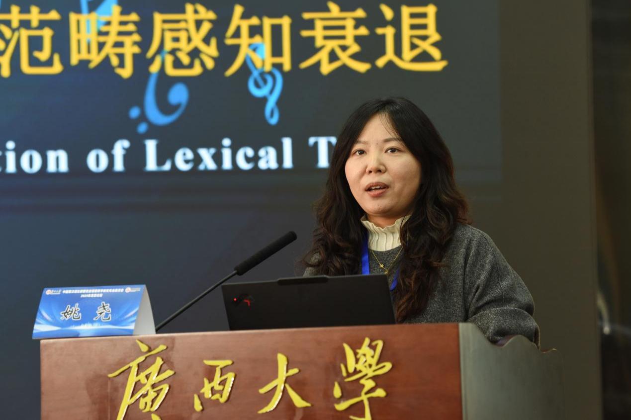 长沙理工大学姚尧老师的报告“音乐经验对老年人普通话声调范畴感知衰退的延缓作用”,比较年轻组与老年组、音乐家与非音乐家在声调阴平-阳平连续统上的感知表现,及工作记忆的中介作用,探讨音乐经验延缓老年人普通话声调范畴感知能力衰退的认知机制。