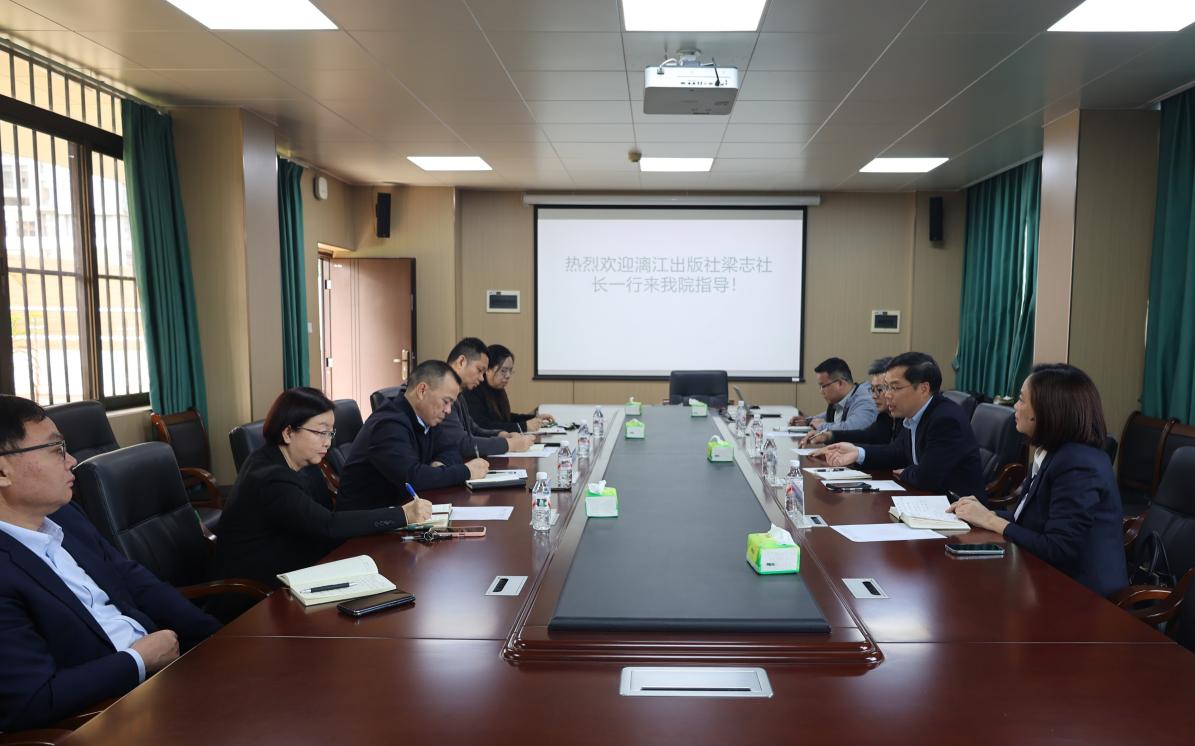 2026年3月6日上午,广西漓江出版社一行在梁志社长的带领下来公司调研与交流。双方围绕图书翻译出版、学术研究及校园文化建设等进行深入交流,并就双方深化合作达成多项共识。