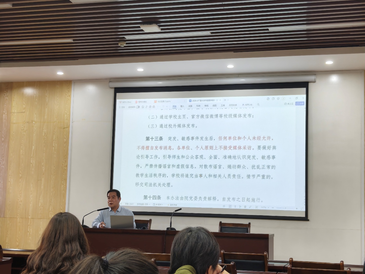 会上,公司分管宣传工作的党委副书记解读了《太阳成集团tyc122cc落实信息发布“三审三校”制度实施细则》,公司班子成员、党支部书记、行政工作人员、员工新媒体中心负责人等参加了会议。