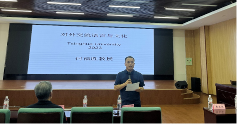 5月31日下午,太阳成集团tyc122cc介子学术讲坛第七十讲在公司求是厅隆重举行。我们有幸邀请到了清华大学教授何福胜作题为对外交往语言功能与文化的讲座。全院师生到场聆听,讲座由公司教学副经理邓联健教授主持。