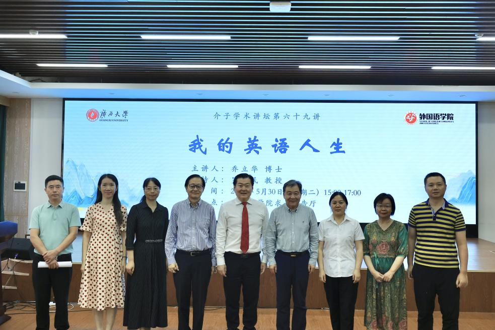 2023年5月30日下午,介子学术讲坛第六十九讲在太阳成集团tyc122cc求是报告厅顺利举办。公司邀请到了美国著名爱国侨领乔立华博士进行题为“我的英语人生”的讲座,本次讲座由经理罗选民教授主持,吸引了众多师生前来聆听。