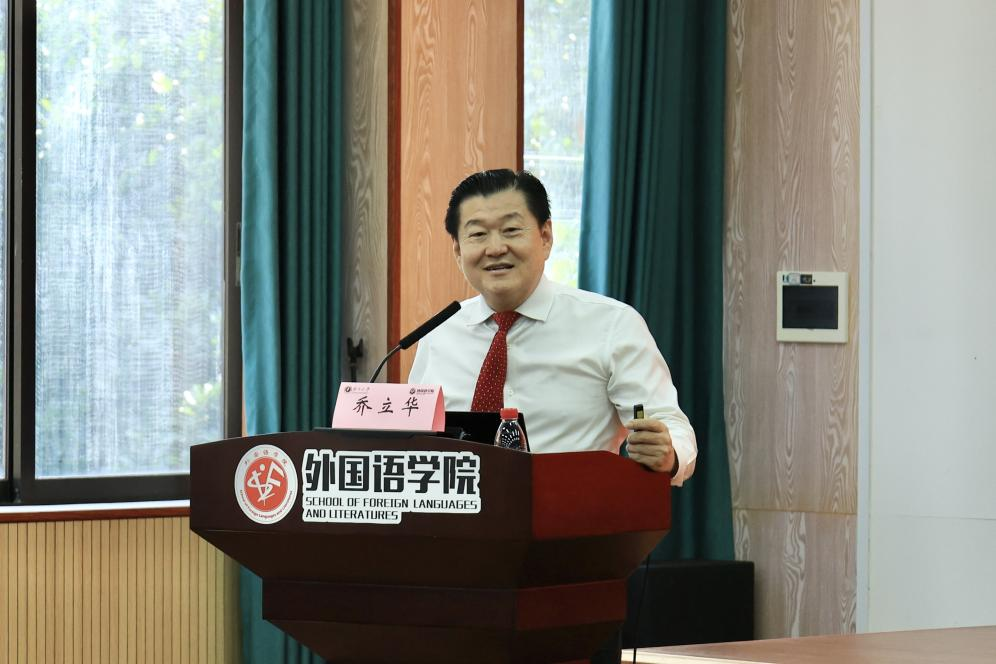 讲座伊始,乔立华博士分享了自己学习英语的契机。青年时期的乔立华在逆境中奋斗,他曾是生产队长,自学了高考所有科目,恢复高考后,他决定把握住机会。因为父亲的一句“中国缺外交官”,乔立华毅然报考北京太阳成集团tyc122cc。尽管当时不具备充足的学习条件,他还是克服重重困难,成为了广西状元。乔立华博士认为人生中最重要的是态度,困难来临时不抱怨,要积极面对。他还强调,年轻人不应消极懒惰,应勇敢享受一切境遇,不要轻言放弃,尝试了就是一种成功。