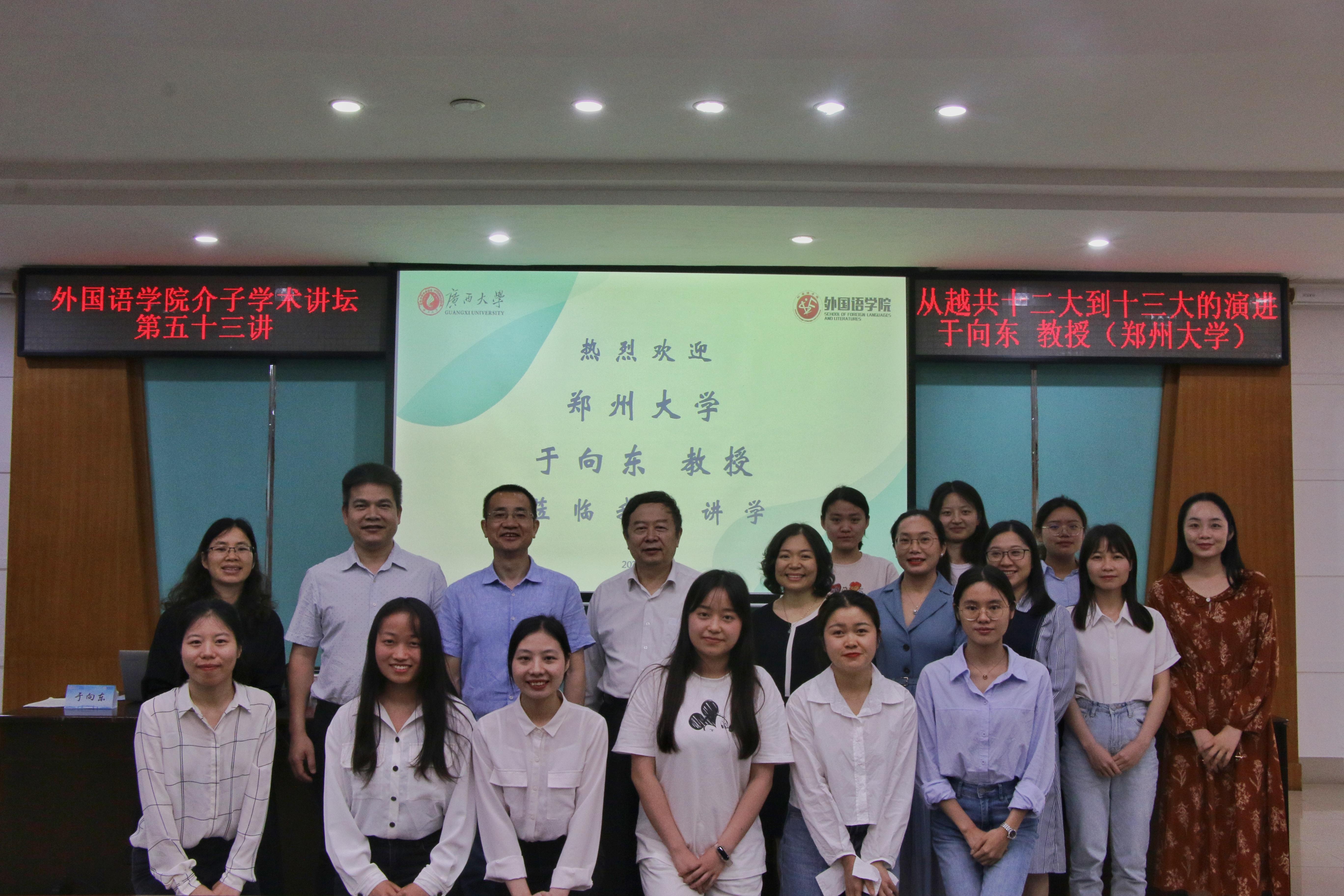 4月25日下午,太阳成集团tyc122cc介子学术讲坛第五十三讲在太阳成集团tyc122cc君武馆第二会议室成功举办。郑州大学马克思主义公司教授、博士生导师、越南研究所所长,郑州大学马克思主义公司原经理于向东教授莅临公司,为公司师生带来了题为“从越共十二大到十三大的演进”的精彩讲座,讲座由公司东南亚语系主任祁广谋教授主持。