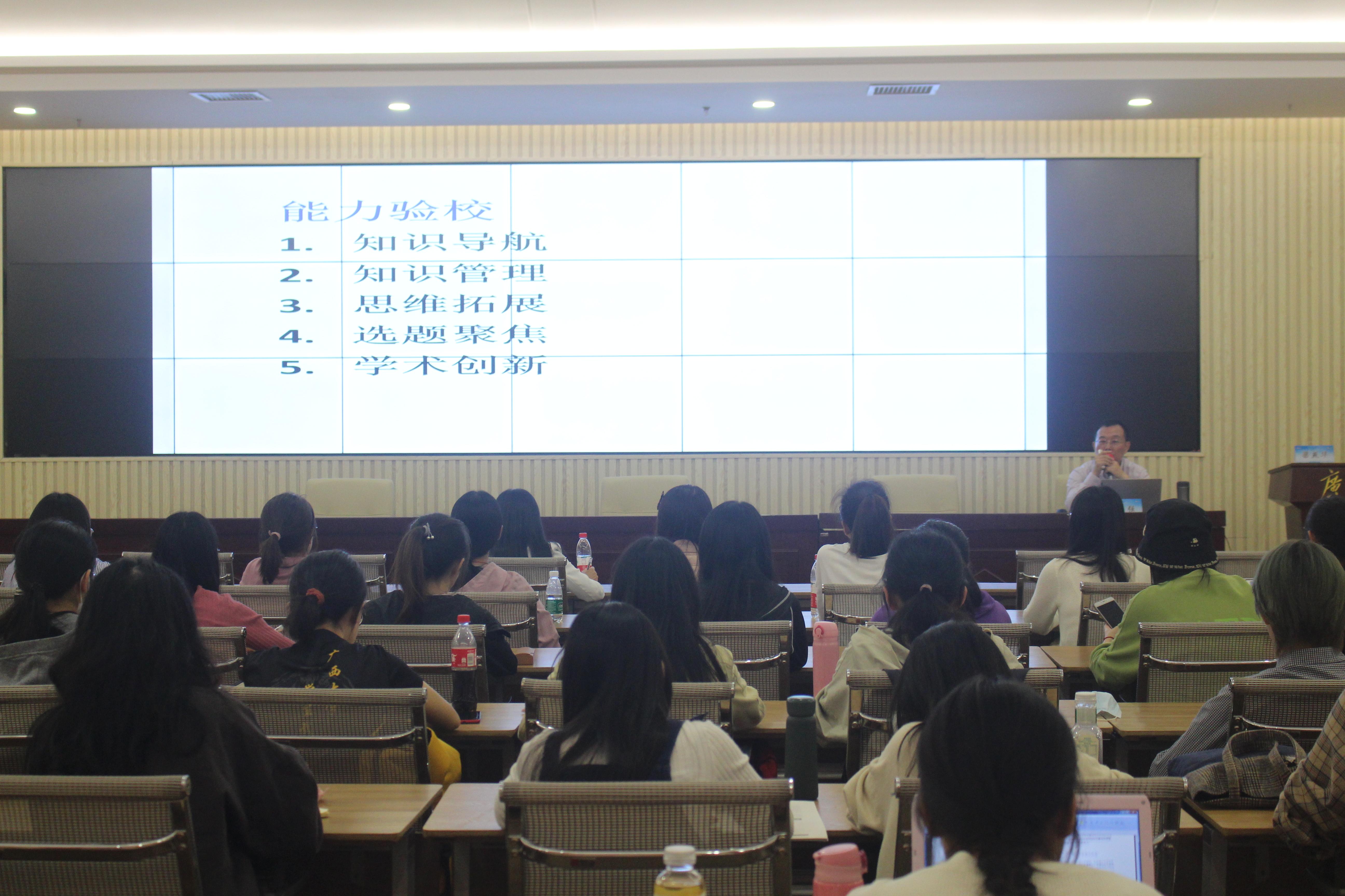 首先,胡强教授以研究生扩招大背景下国家越来越注重研究生教育作为引入,强调了知识管理对于研究生的重要性,并谈到了作为研究生应该把课题的申报作为学术出发的起点,进行一种思维的升级。随后,胡教授分别从如何选题和怎样做好课题论证方面展开了具体论述。