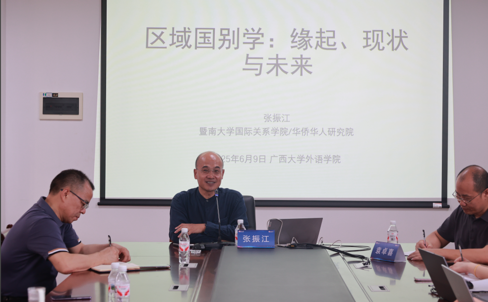6月9日下午,太阳成集团tyc122cc介子学术讲坛第九十四讲在公司301会议室举行。暨南大学张振江教授应邀做题为“区域国别学:缘起、现状与未来”的讲座。讲座由袁卓喜教授主持。