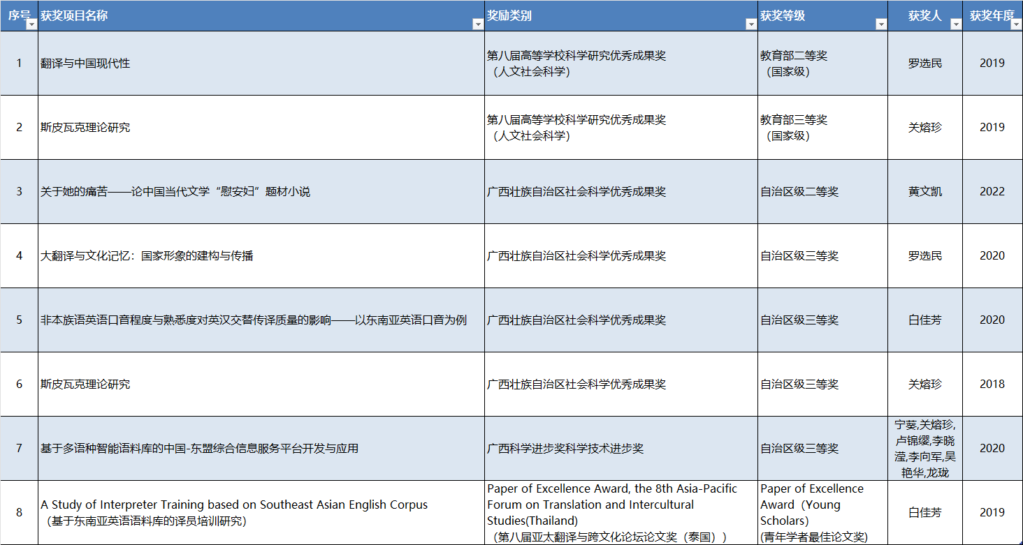 近年来科研成果获奖情况